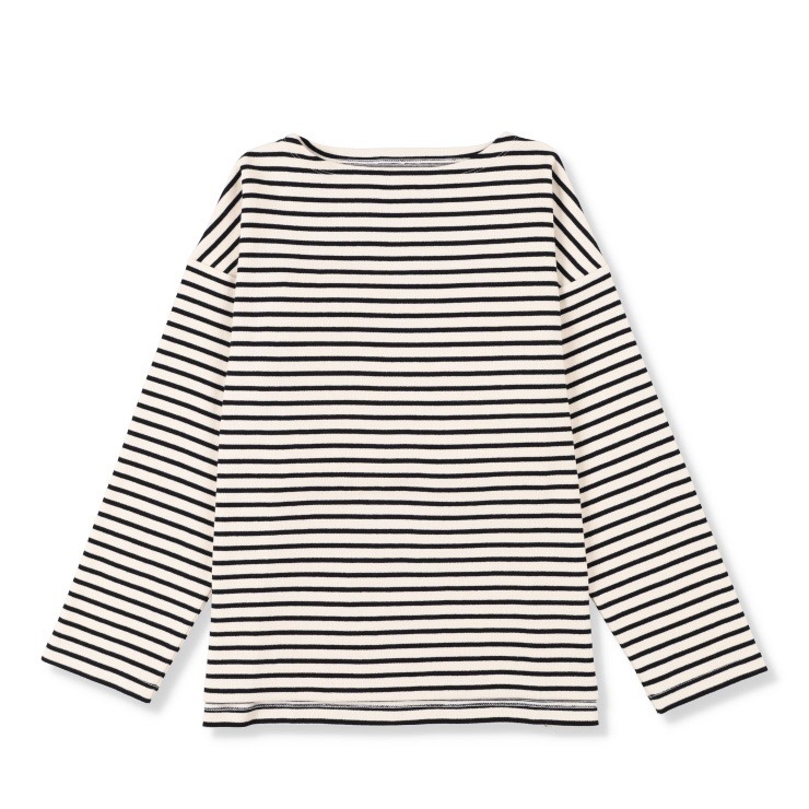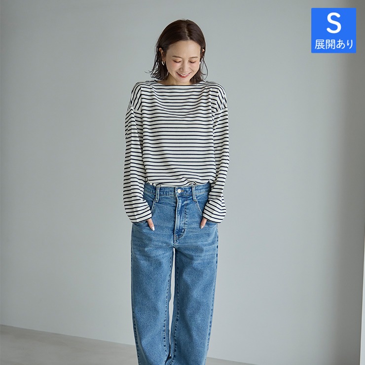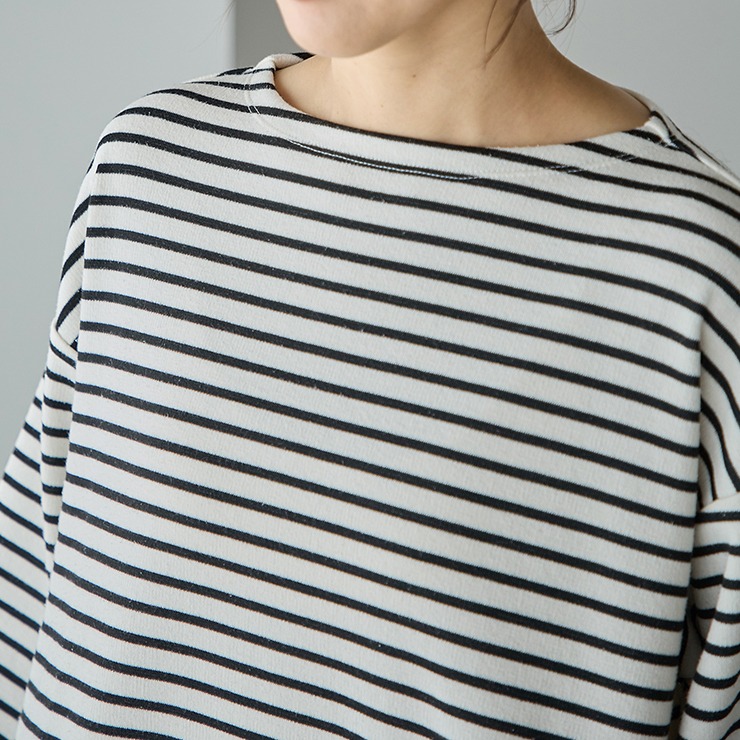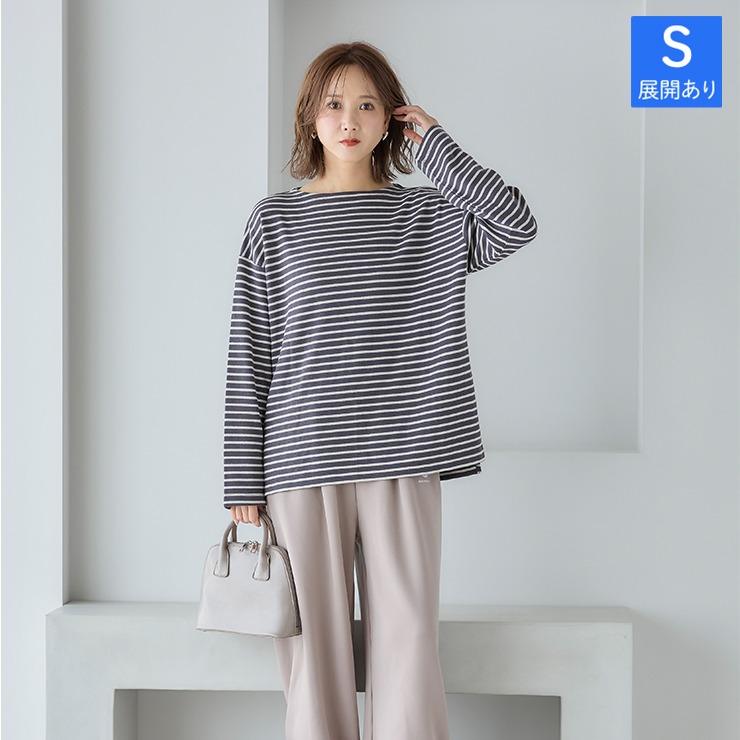 シンプルな配色でどんなスタイリングにも合わせやすいボーダートップスです。程よく厚みのある素材感なのでロングシーズン活躍します。ゆとりのあるシルエットでボトムを選ばず幅広いコーディネートを楽しめます。