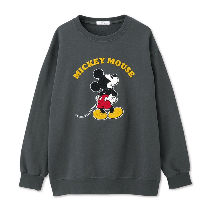 製品洗い加工のDisney「Mickey Mouse」サガラ刺繍デザインの裏起毛プルオーバーです。