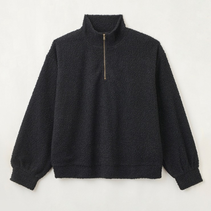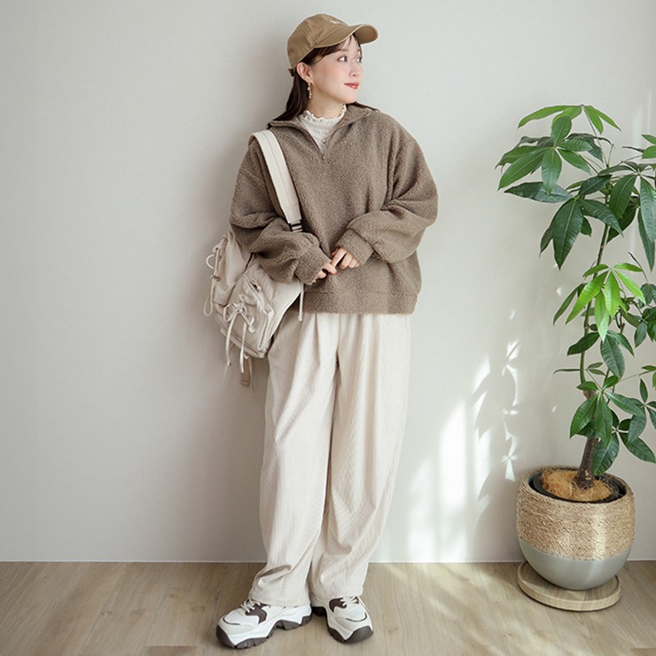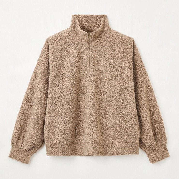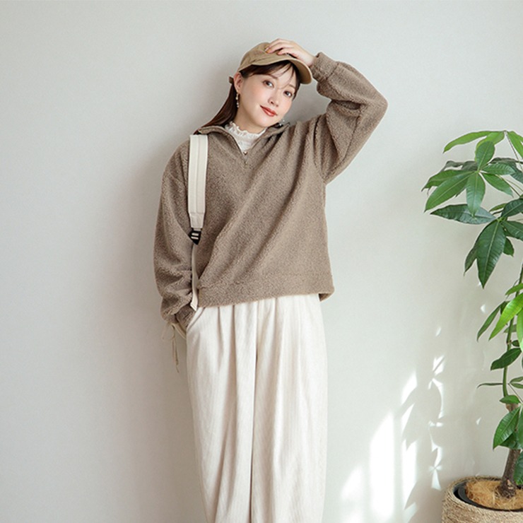 程よいボリューム感のボア素材が、シーズンムードを高めてくれるハーフジップトップス。