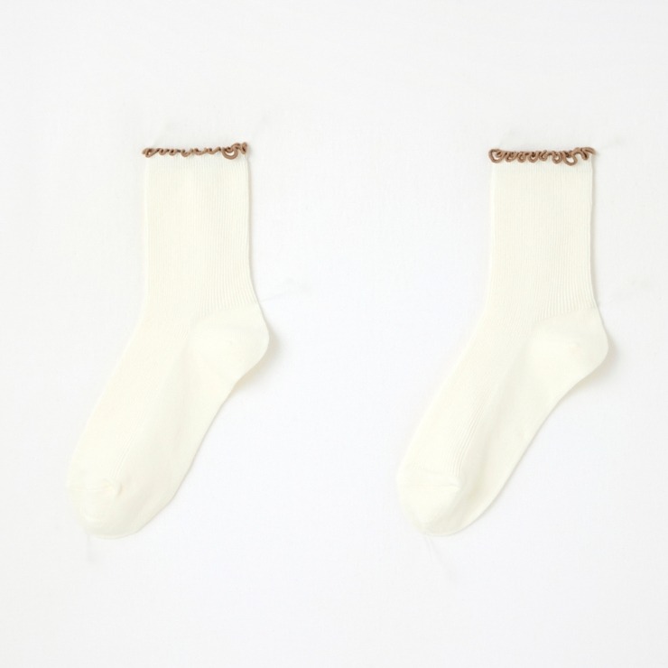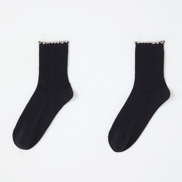 チラ見せ使いにピッタリな、はき口のメローデザインが可愛らしいソックス。配色がアクセントになっています。きれいめなスタイリングにも合わせやすいアイテムです。