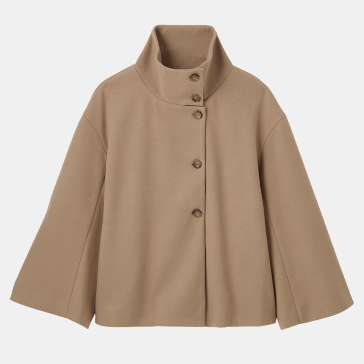 マフラー無しでも首元まで暖かいスタンドカラーと、襟を倒して着ても首元が品よくカジュアルなスタイリングになるステンカラー、どちらも楽しめる2wayコートです。