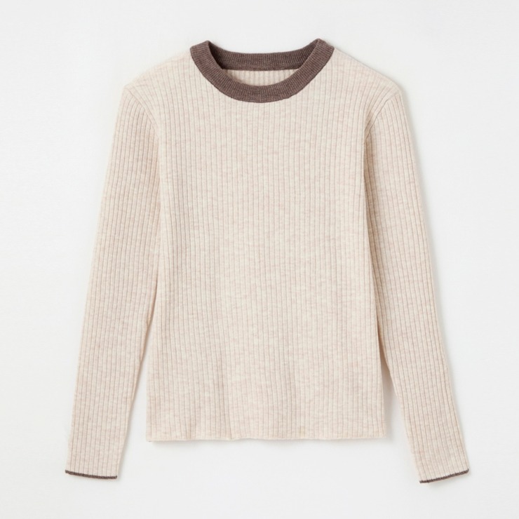衿と袖口の配色がポイントのリブニットプルオーバー。