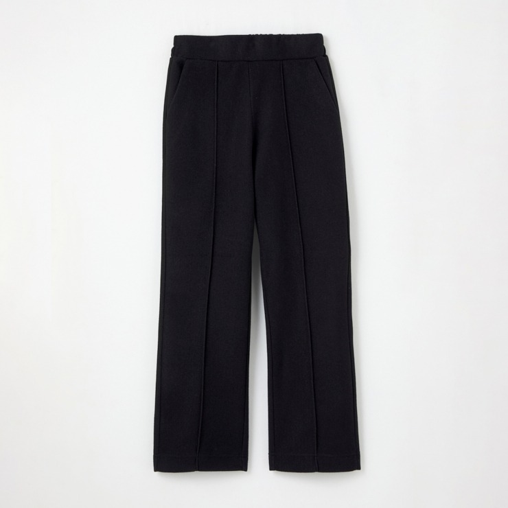 温かみのあるカットソー素材のピンタックストレートパンツです。フロントのピンタック仕様で脚長見えがポイントです。ウエストは後ろゴムで着脱がラク。左右ポケット付きです。