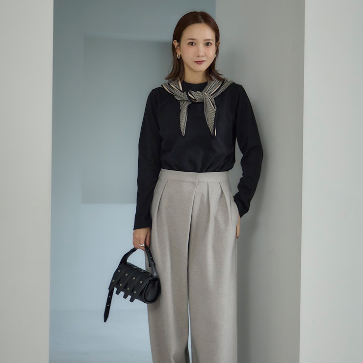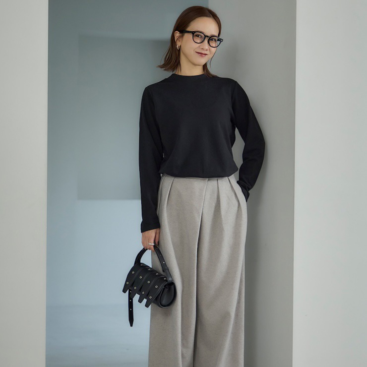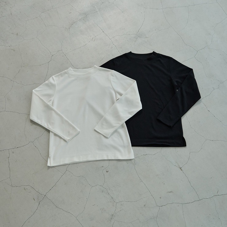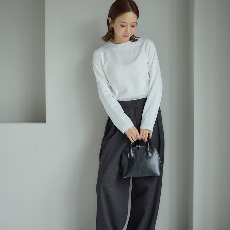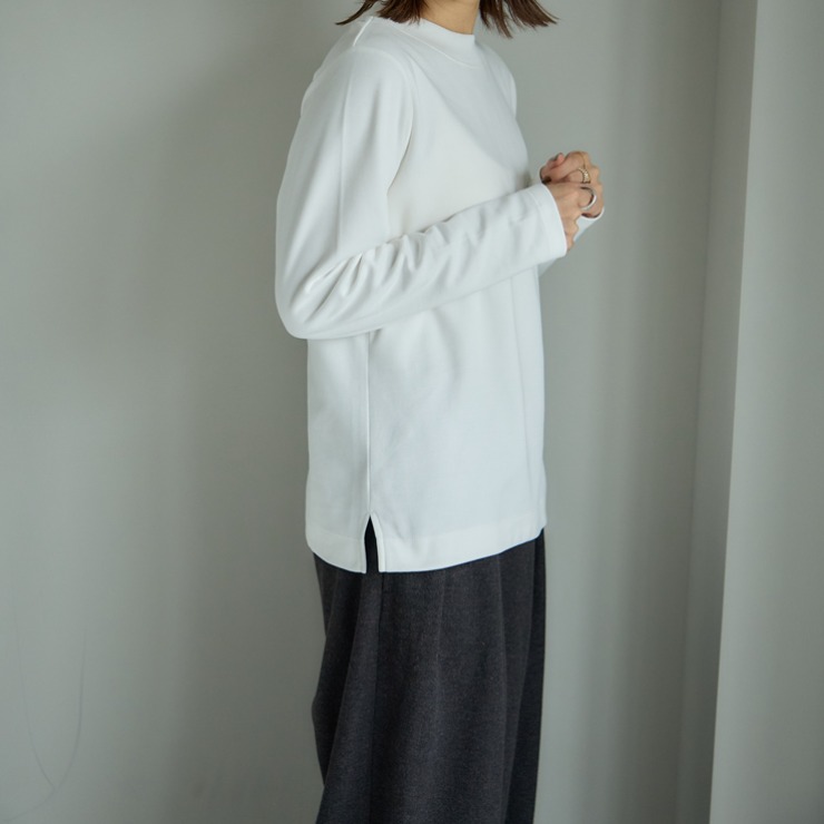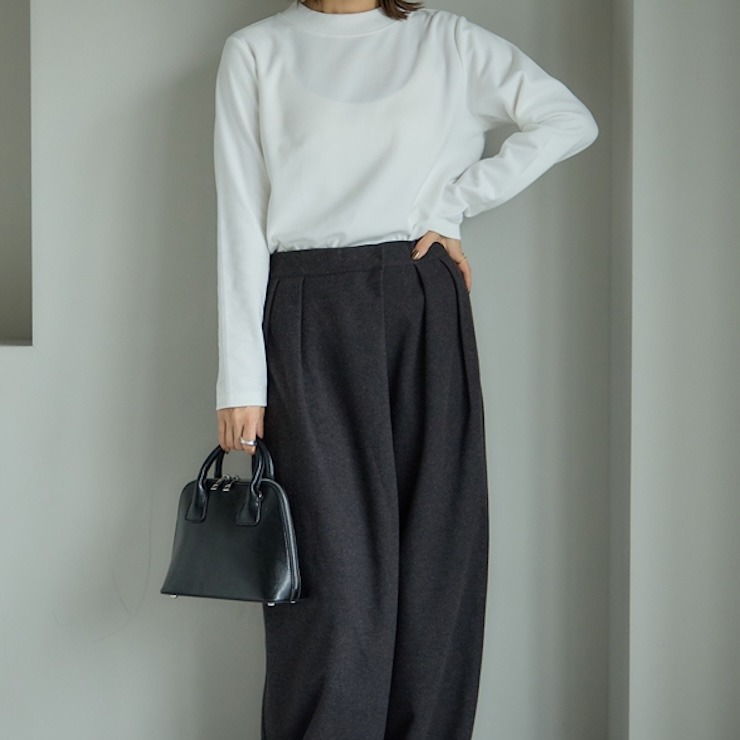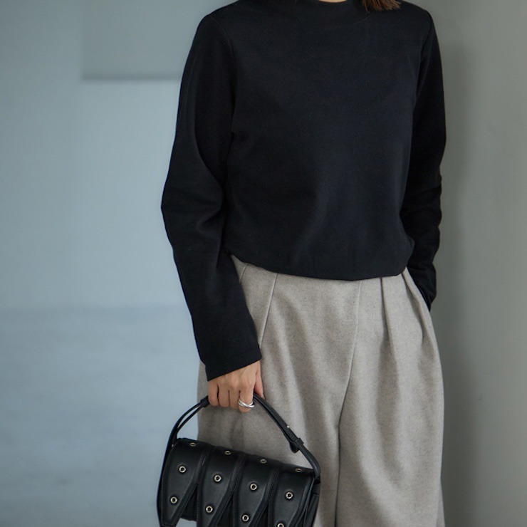 首まわりは胸元が開かずあたたかいモックネックのデザイン。