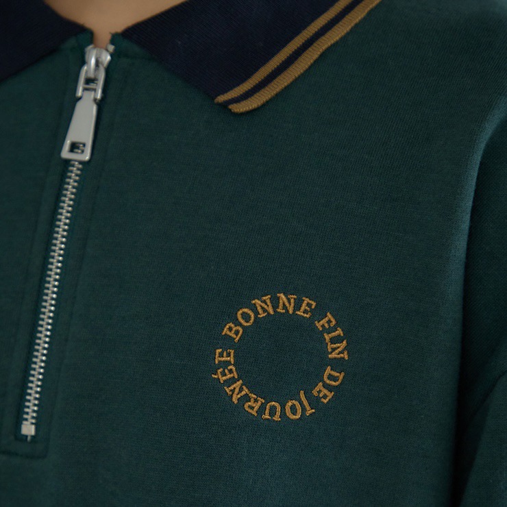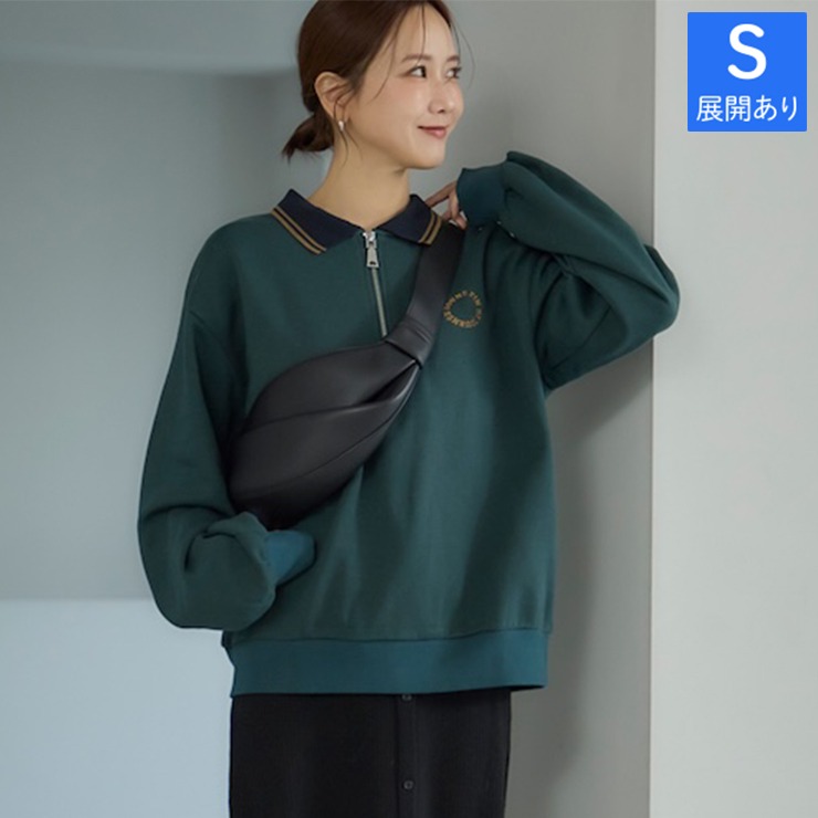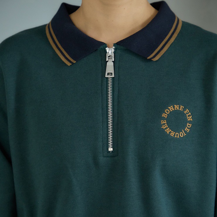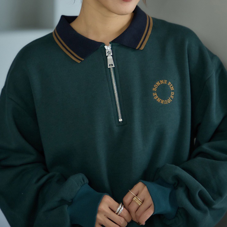 配色リブがアクセントになったハーフジップトップスです。左胸のサークルロゴ刺繍がさりげないポイントに。1枚で着映えする存在感があり、ゆったりとした程よいサイズ感で、どんなボトムスともバランスよくコーディネートできます。