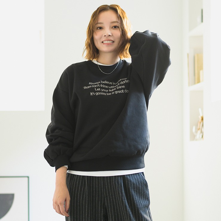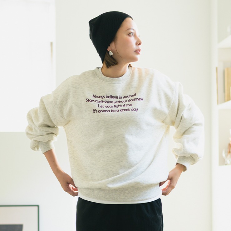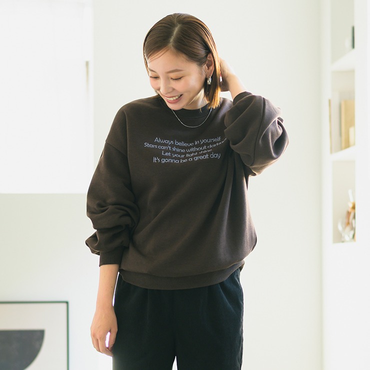 胸元のチビロゴ刺繍がポイントの裏起毛のトップスです。シンプルながらも配色の刺繍ロゴがほどよいこなれ感を演出。ゆったりとしたシルエットで、デイリー使いはもちろん、リラックスタイムにもぴったりです。デニムやスカートなど、どんなボトムスとも好相性の万能アイテムです。