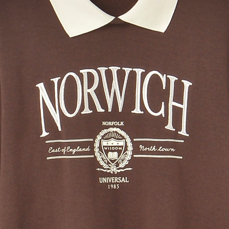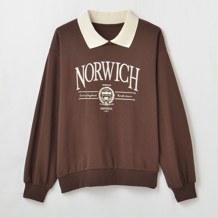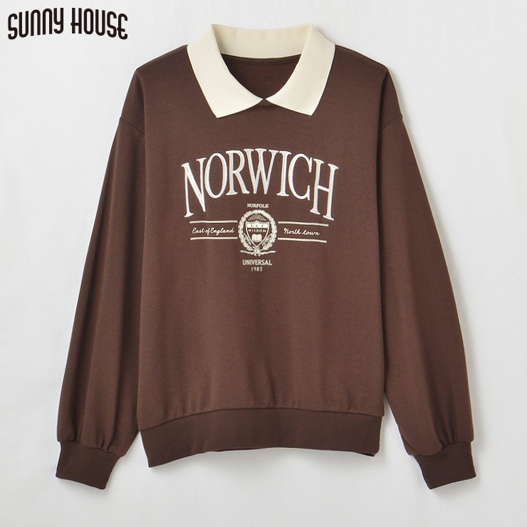 胸元のカレロゴモチーフと襟付きのレイヤード風デザインが、トレンド感あふれる裏毛トップスです。