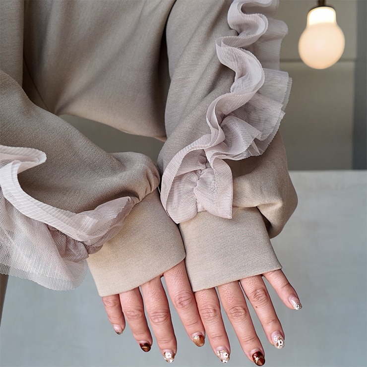 レディース 袖チュールプルオーバー(きなこっこ)