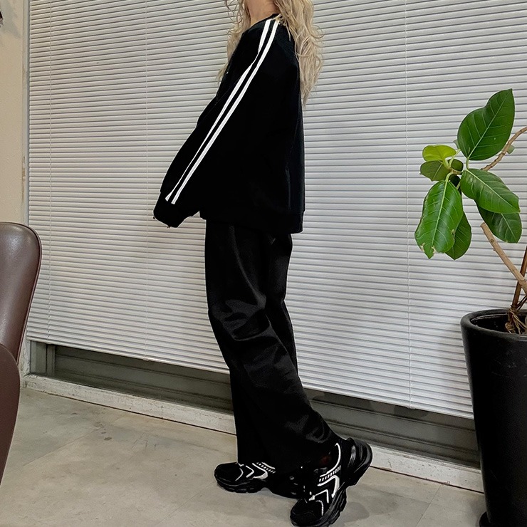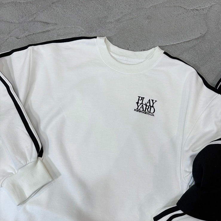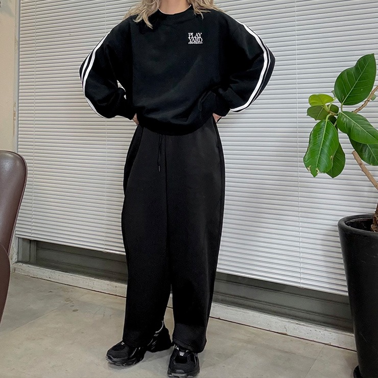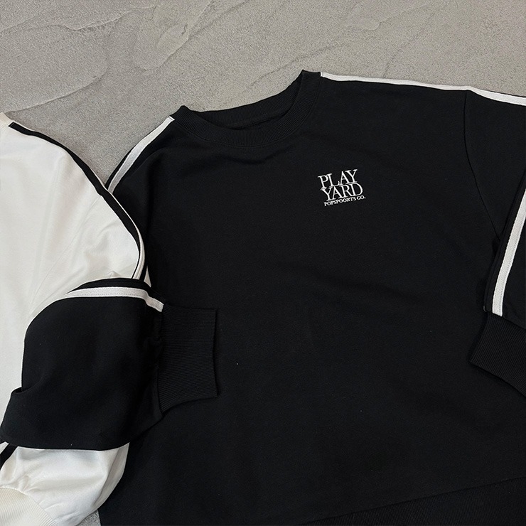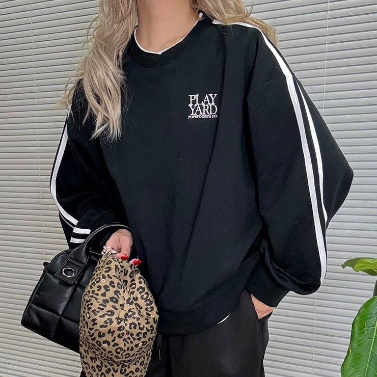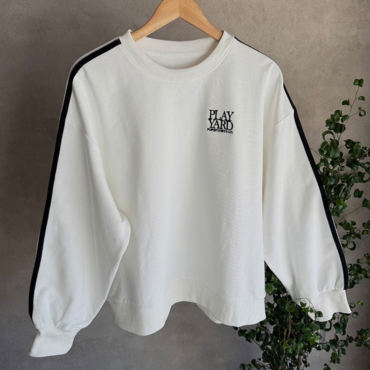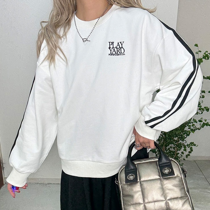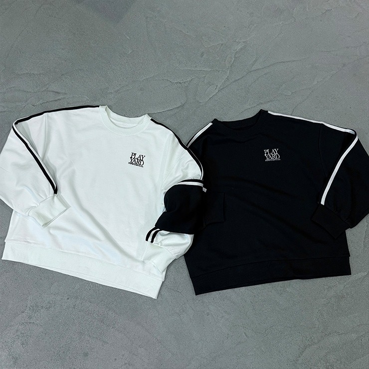 人気定番の袖ラインがポイントの裏毛トレーナー。