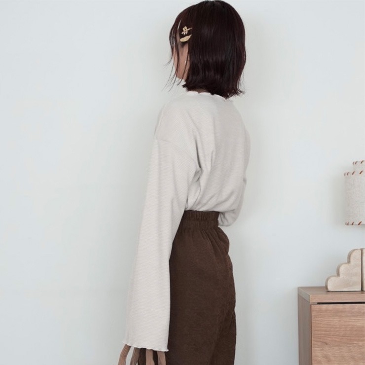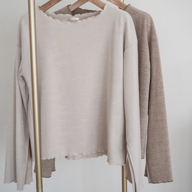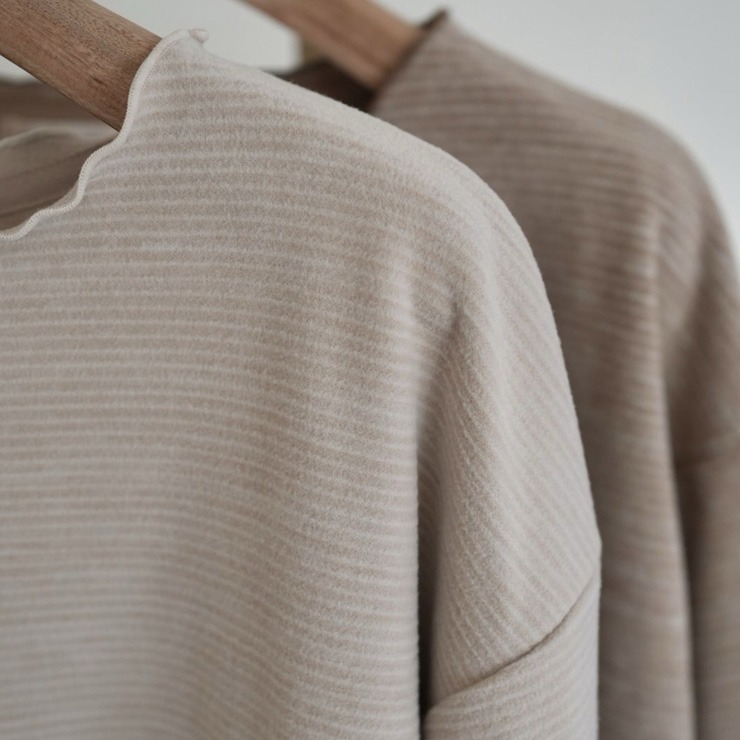 両面がピーチ起毛されたカットソー素材を使用した淡色ボーダープルオーバー。