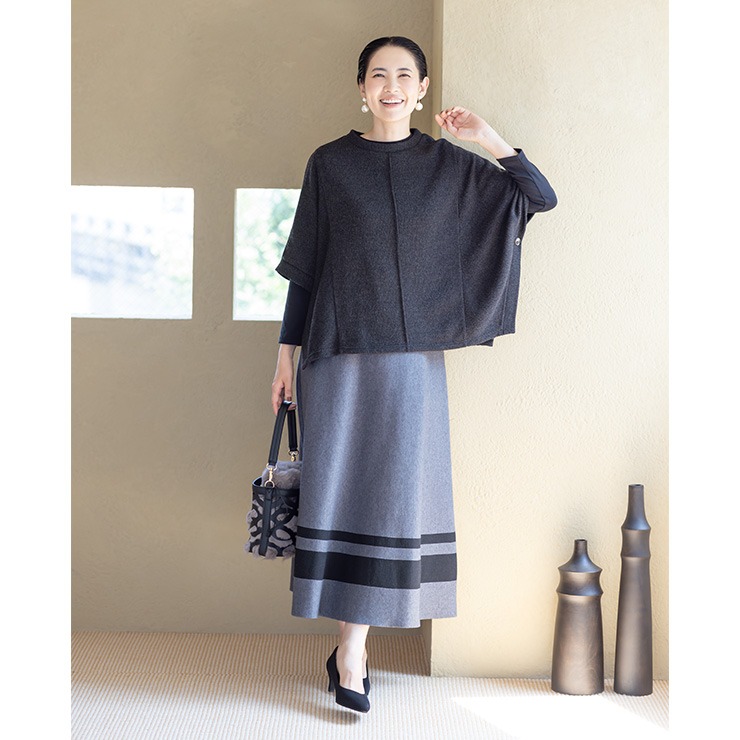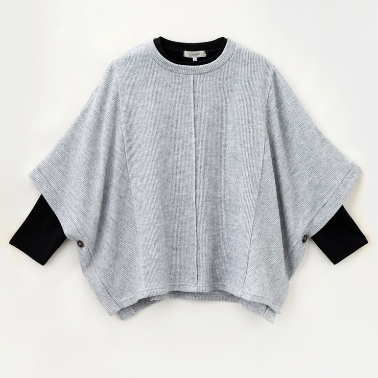 切り替えデザインを活かしたポンチョ型プルオーバーは、体型カバーとおしゃれ見えの両方を叶えてくれる一押しのアイテムです。