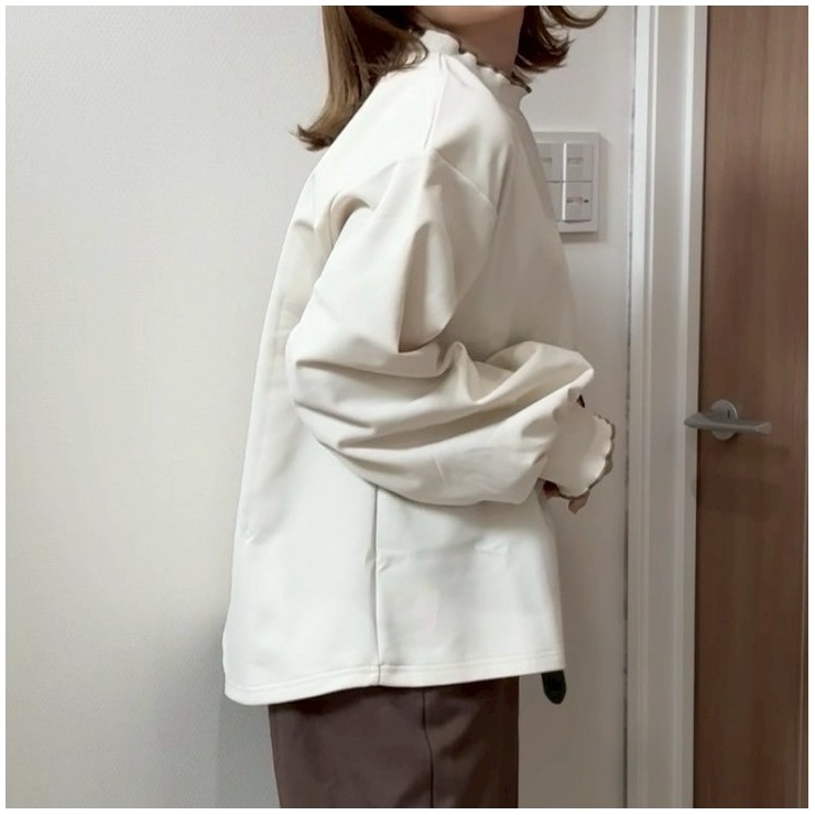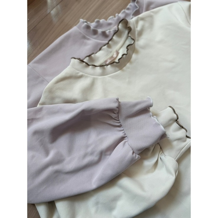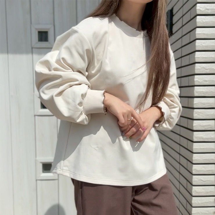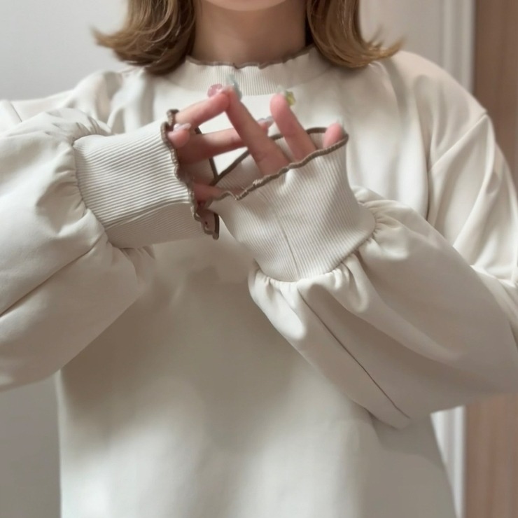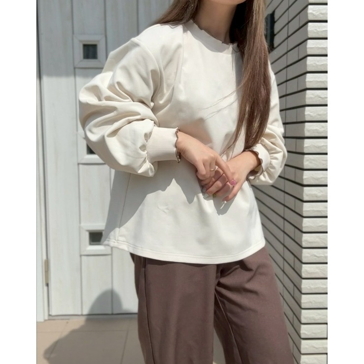 衿、袖の配色メローがアクセントのダンボール素材のトレーナーです。