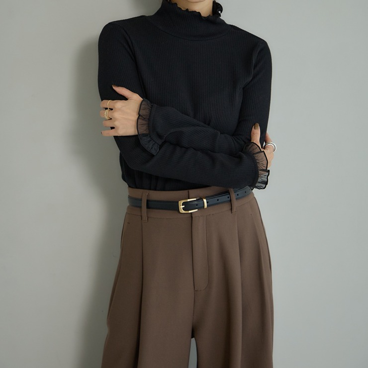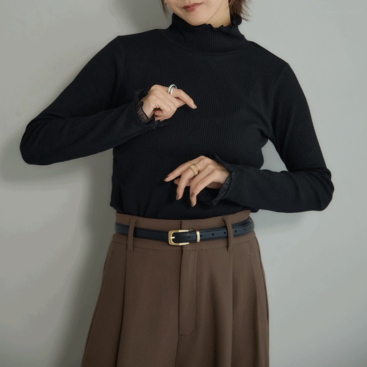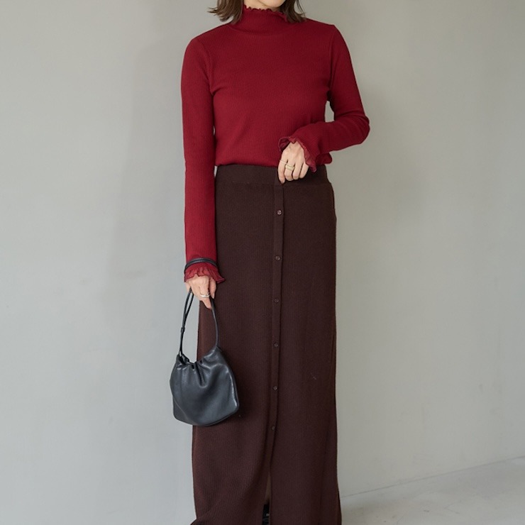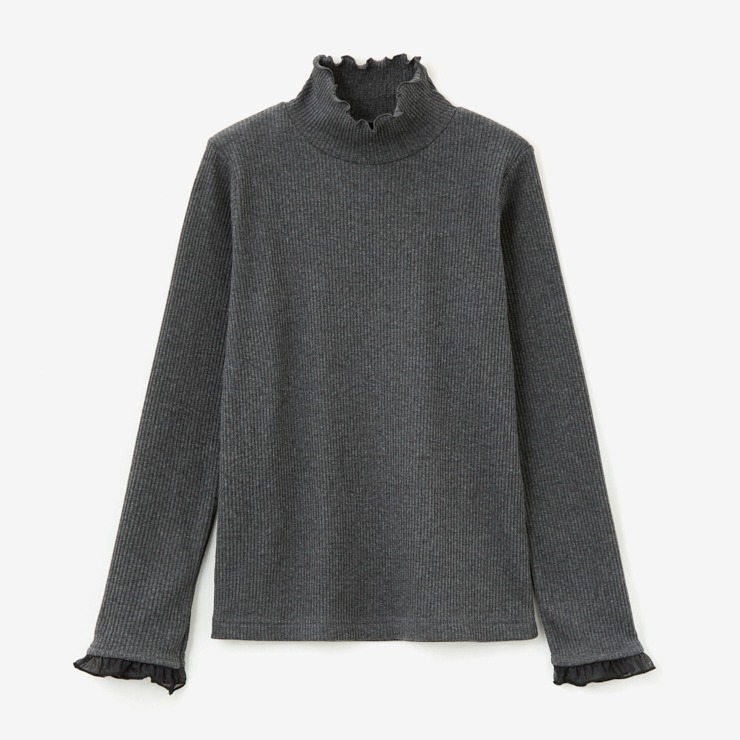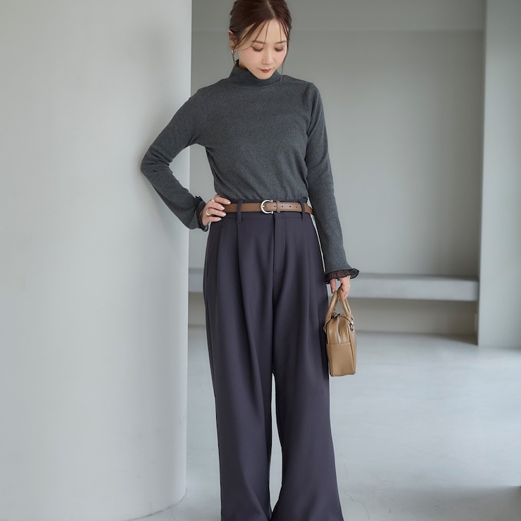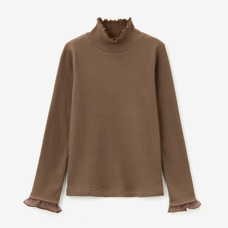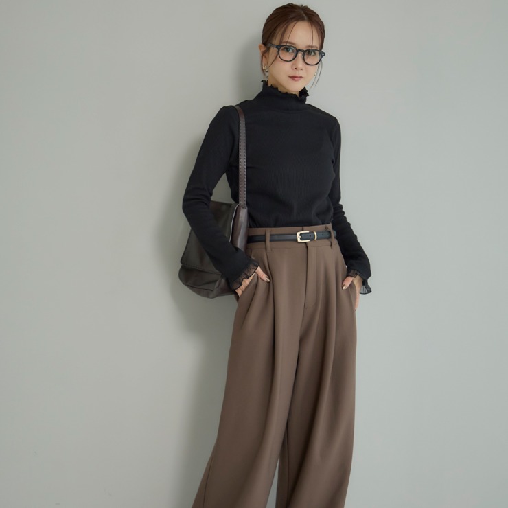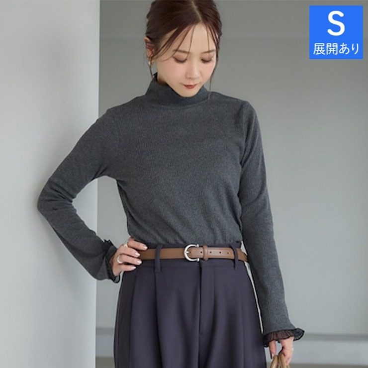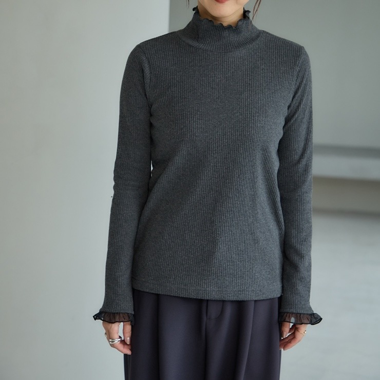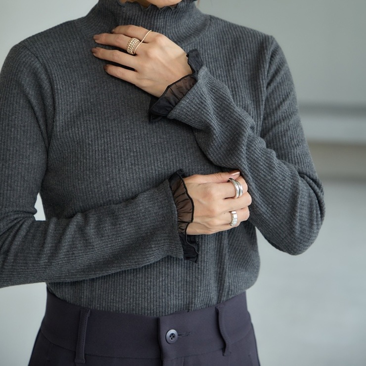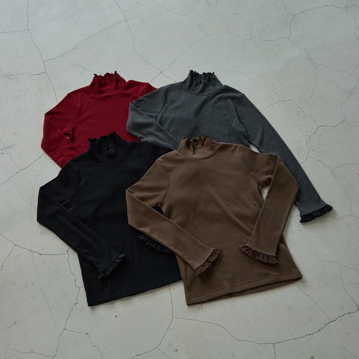 前回大好評だった袖シアーがポイントのテレコトップスです。今回は温かみある裏起毛素材になっています。シンプルなシルエットなので派手になりすぎず、どんなボトムスとも合わせやすいのが魅力。1枚でコーディネートが決まる主役級のトップスです。