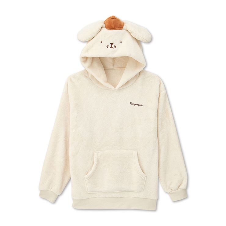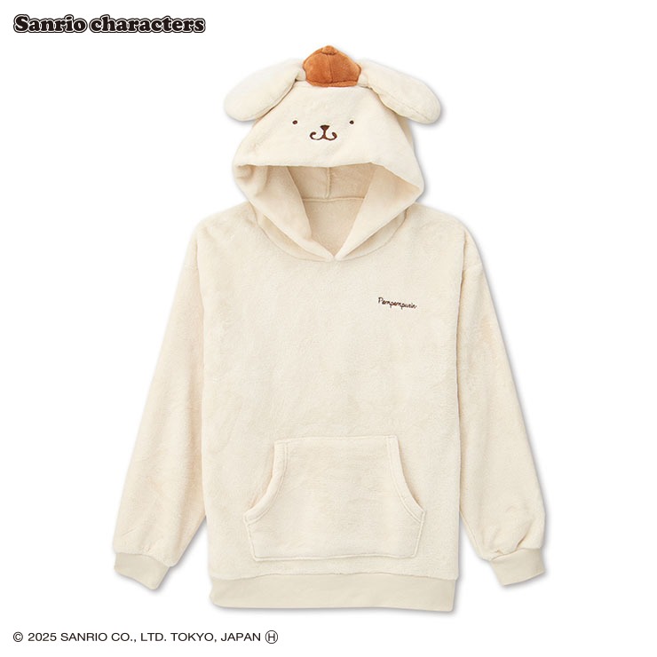 ポムポムプリン 耳付きパーカ ポムポムプリンになりきれちゃうフードが可愛い! 袖のお友達刺しゅうもポイント!