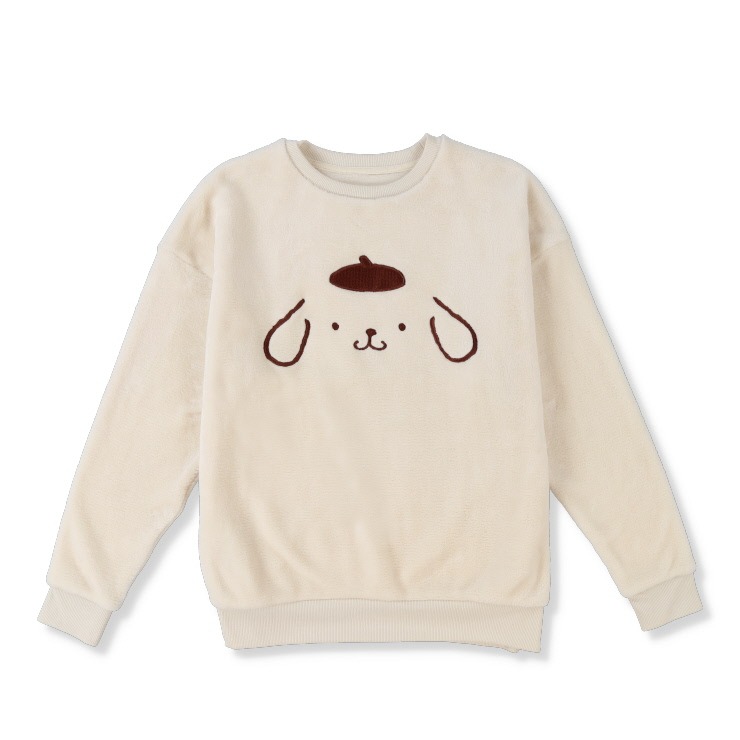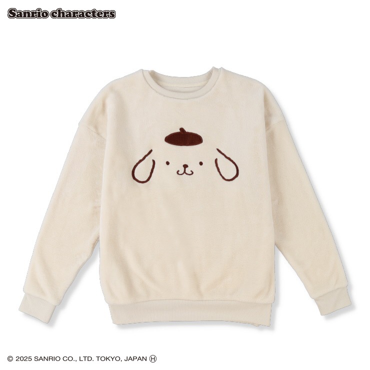 ポムポムプリン ボアトレーナー 前身のポムポムプリン刺しゅうが可愛い! 後身のお友達刺しゅうもポイント!