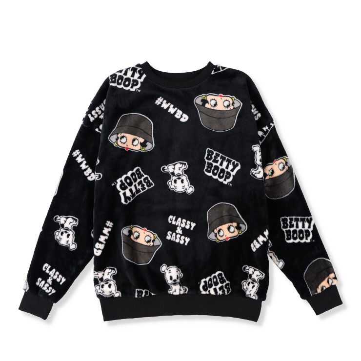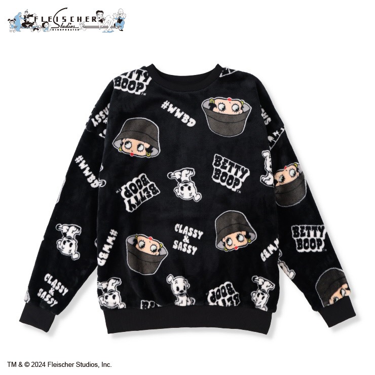 BETTYBOOP ボアトレーナー ベティちゃんの総柄が可愛い! もこもこボア素材で着心地も抜群!