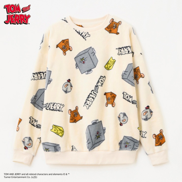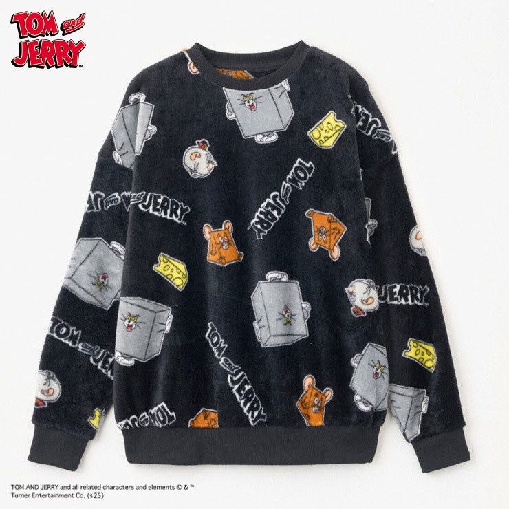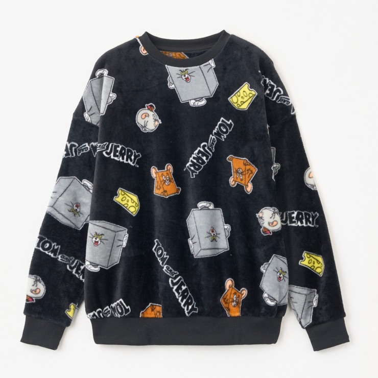 トムとジェリー ボアトレーナー トムとジェリーの総柄が可愛い! もこもこボア素材で着心地も抜群!
