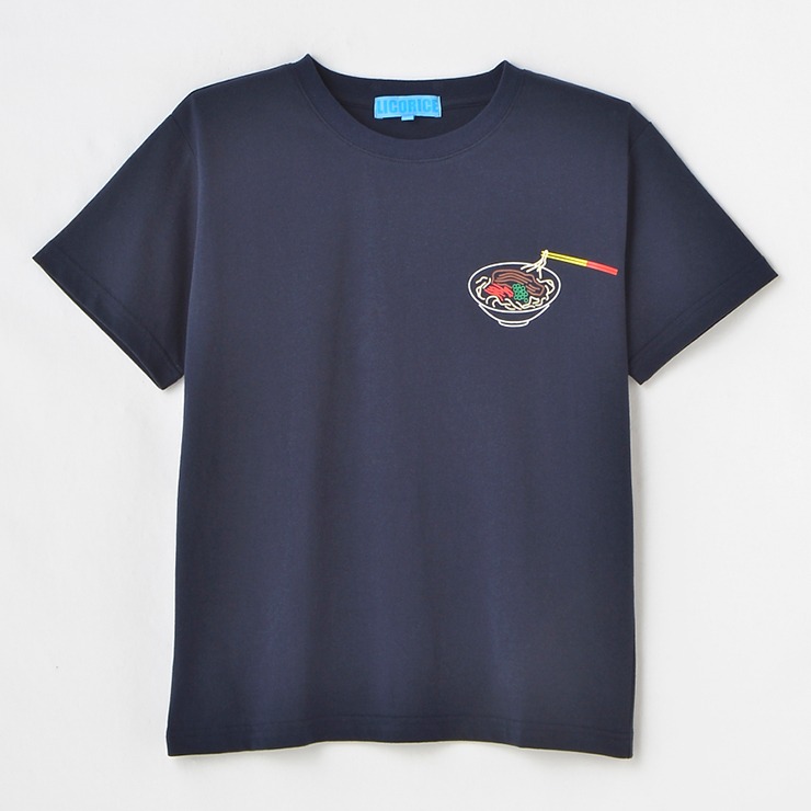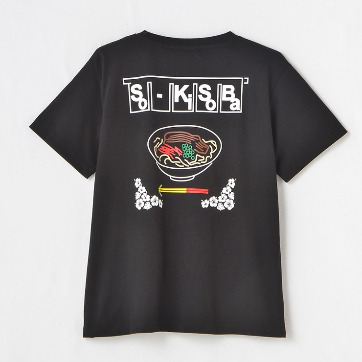 フロントの胸元とバックにソーキそばのイラストプリントを施したTシャツです。