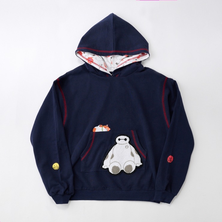 キャラクターのプリントがかわいい、裏毛素材のパーカです。