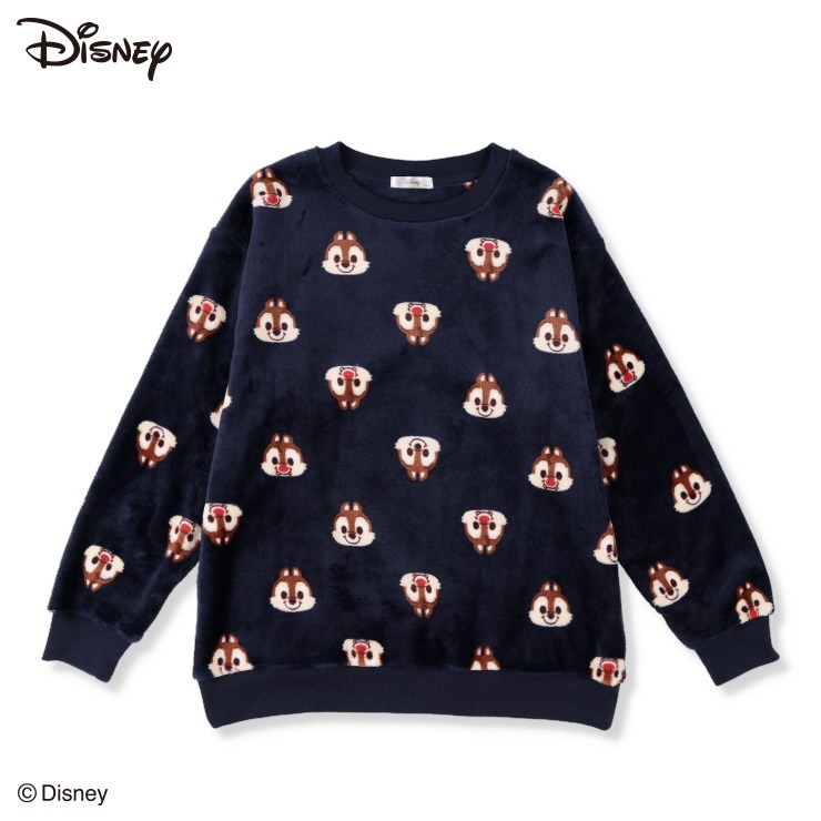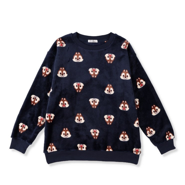 Disney「チップ&デール」総柄プリントデザインのフリースプルオーバーです。