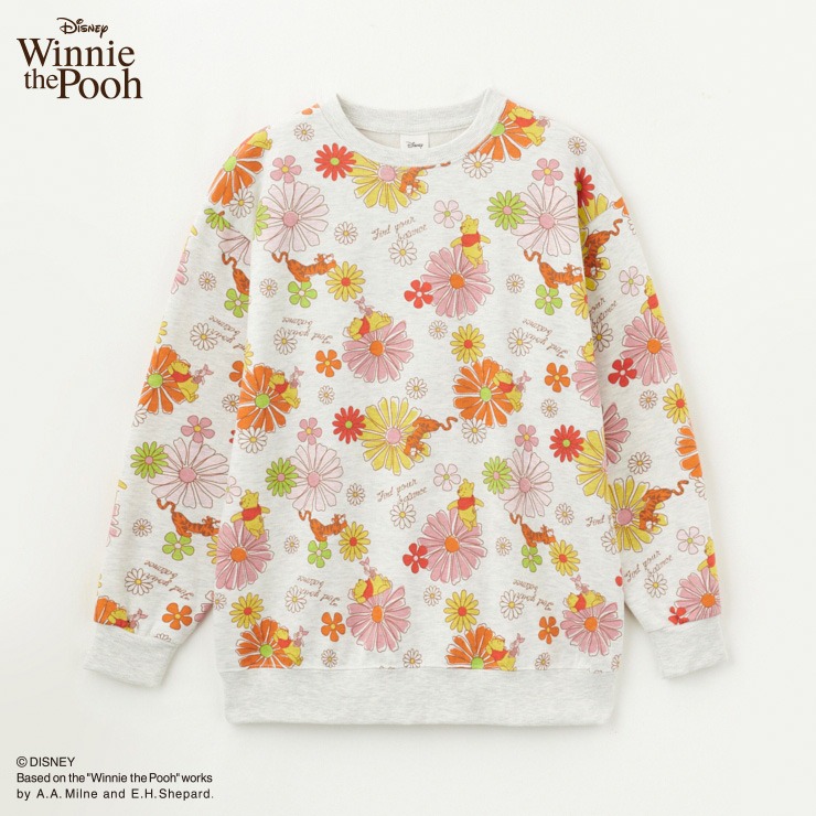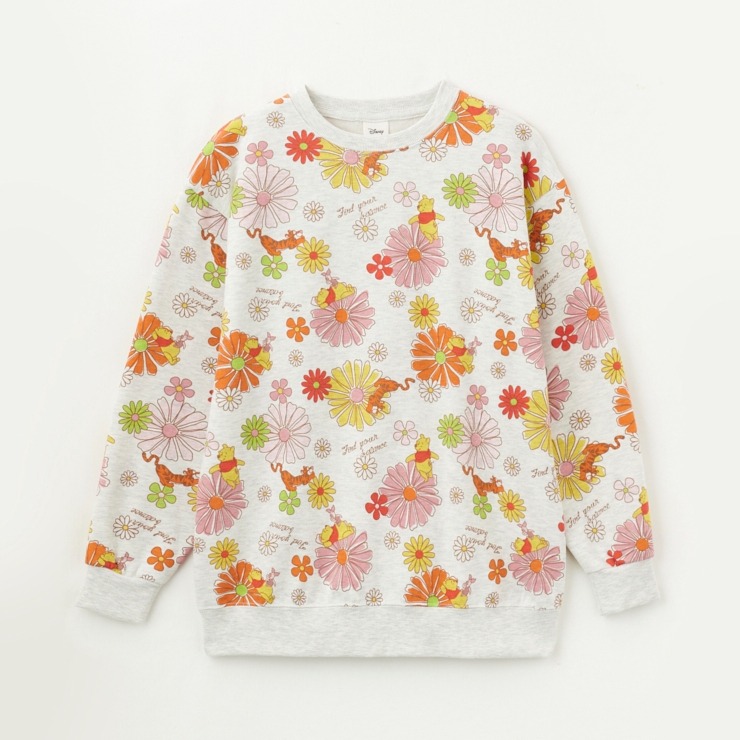 「Winnie the Pooh」花総柄プリントデザインの裏起毛プルオーバーです。
