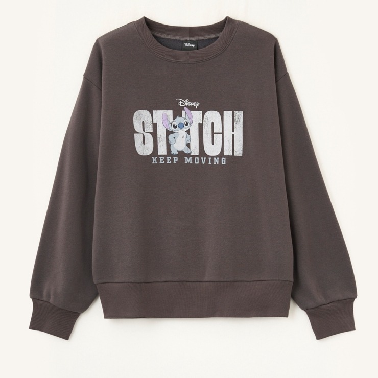 ・裏起毛長袖トレーナー スティッチデザインの半ラバープリント入り
