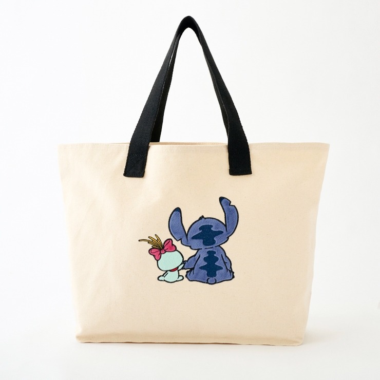 ・キャンバス地トートバッグ スティッチデザインのスウェード刺繍入り