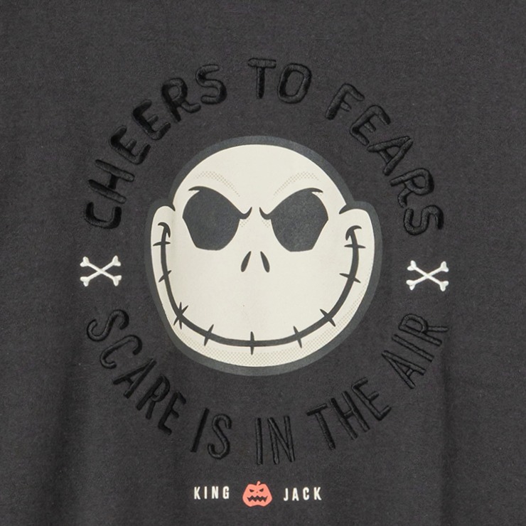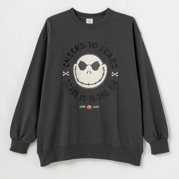 Disney映画「ナイトメアー・ビフォア・クリスマス」プリント&刺しゅうデザインの裏起毛トレーナーです。