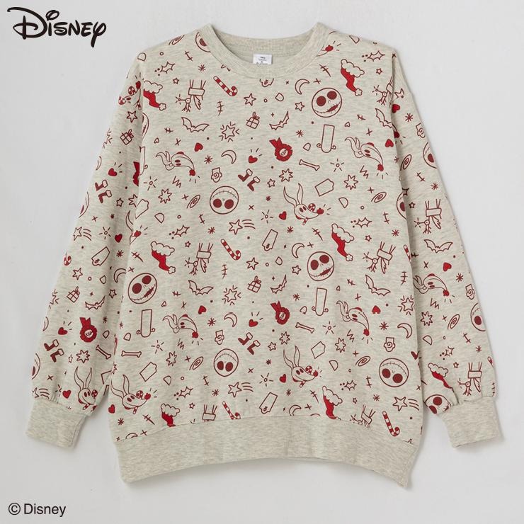 Disney映画「ナイトメアー・ビフォア・クリスマス」総柄プリントデザインの裏起毛トレーナーです。