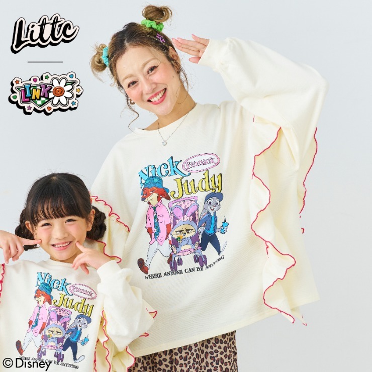 ズートピアの仲間たちがプリントされた、裏毛素材のトレーナーです。