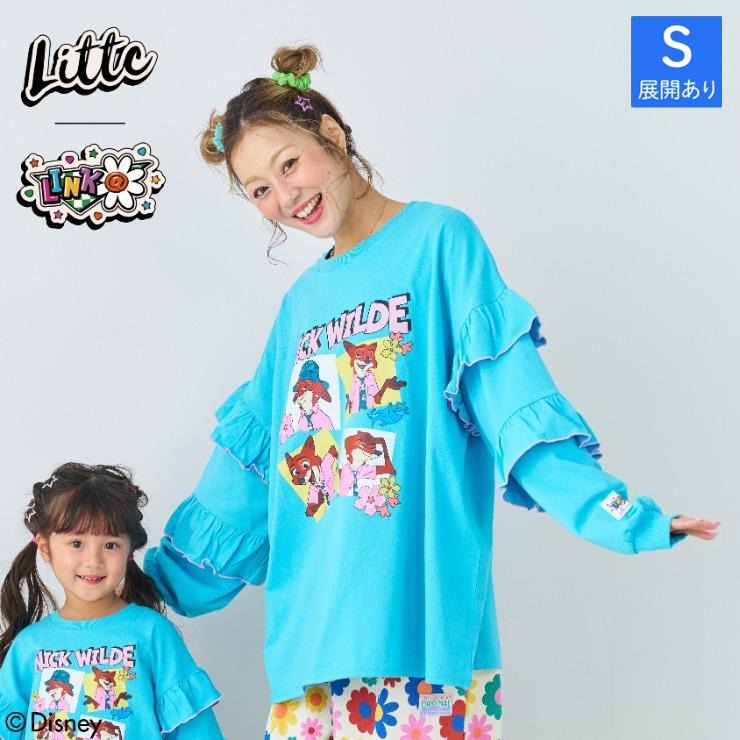 ズートピアのニックがプリントされた、袖のフリルがかわいい長袖Tシャツです。