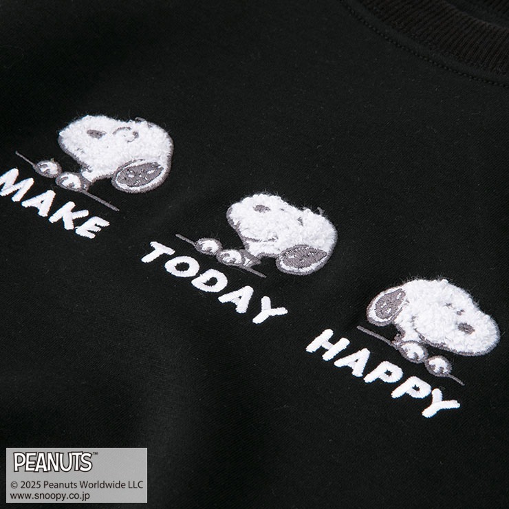 色々な表情のスヌーピーのサガラ刺繍がポイントです