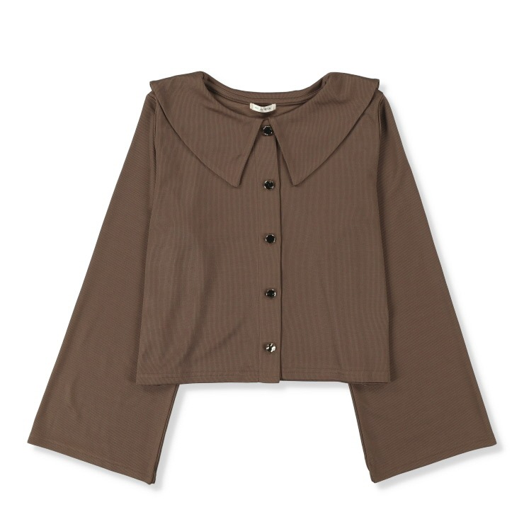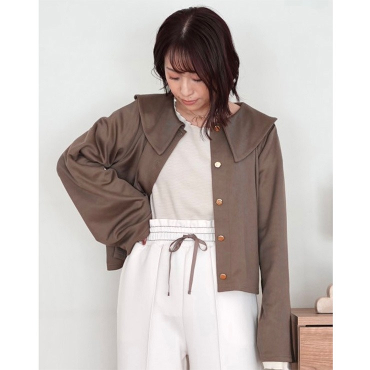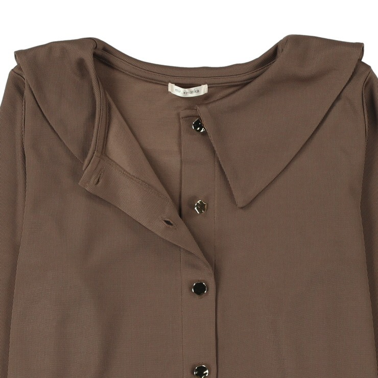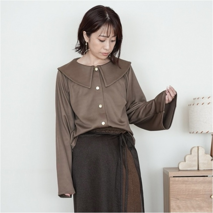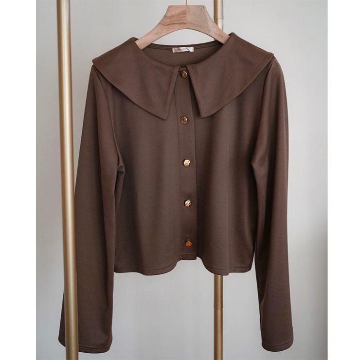 大きめの衿が今年らしいカットソー素材のカーディガンです。