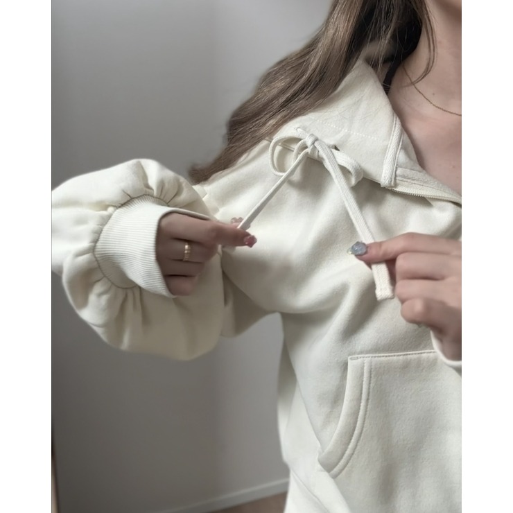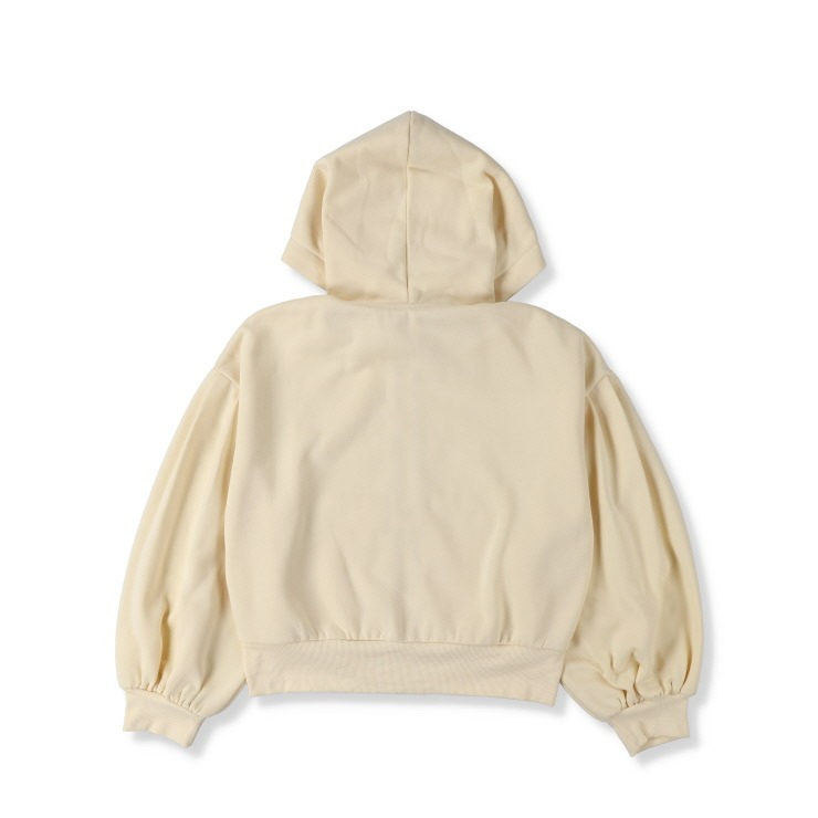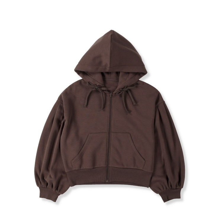 ゆるっとシルエットとたっぷり目のぽわん袖がかわいい裏起毛ジップパーカです。
