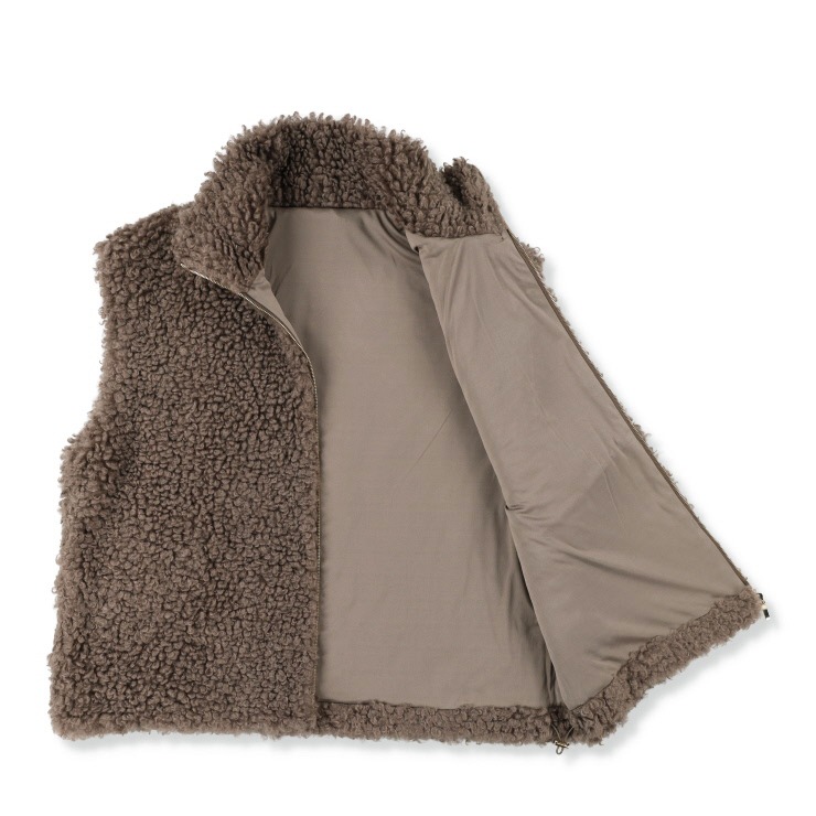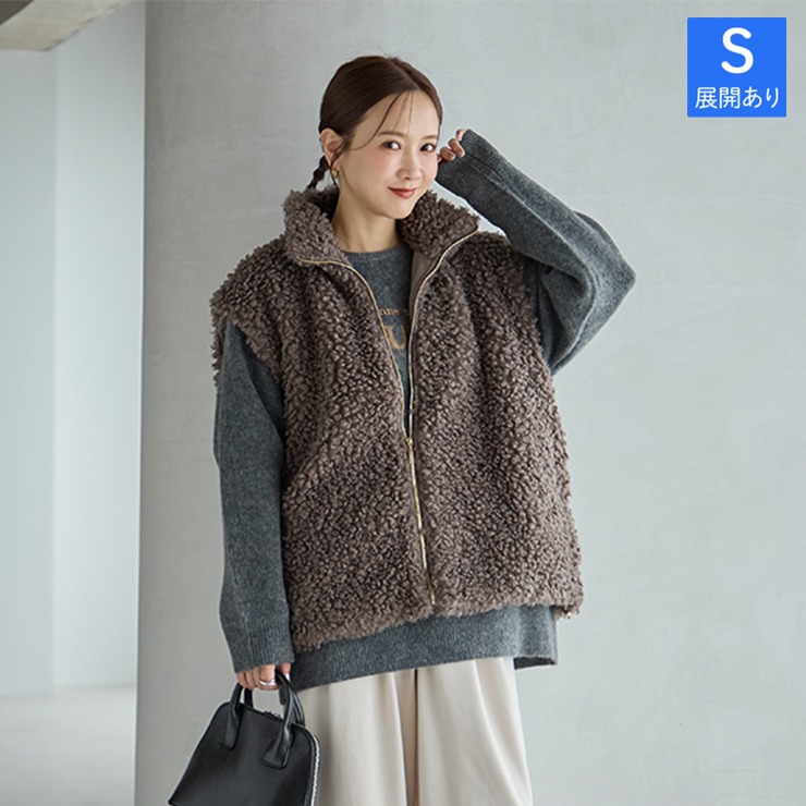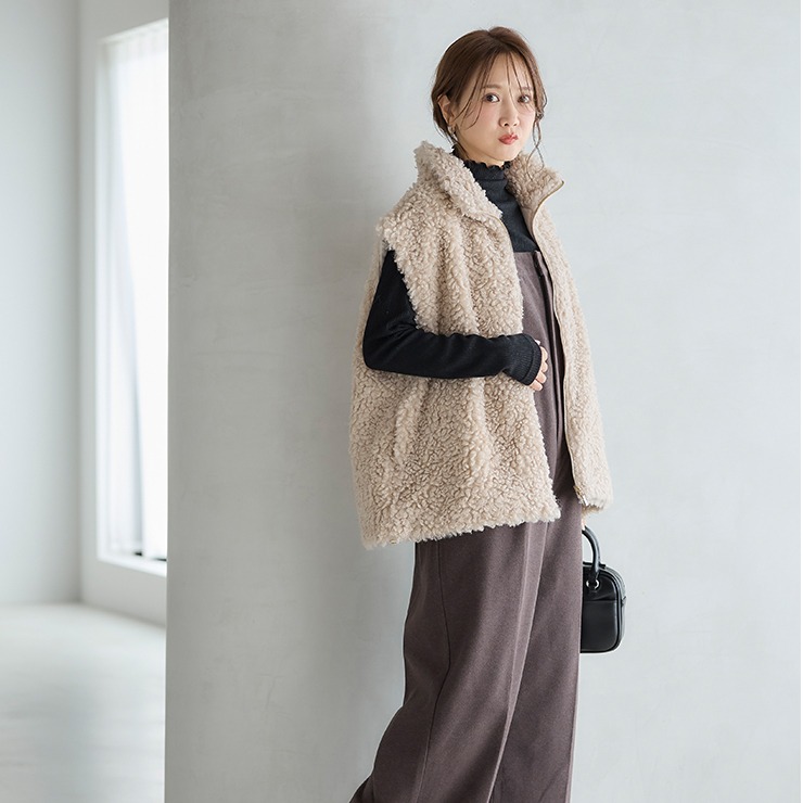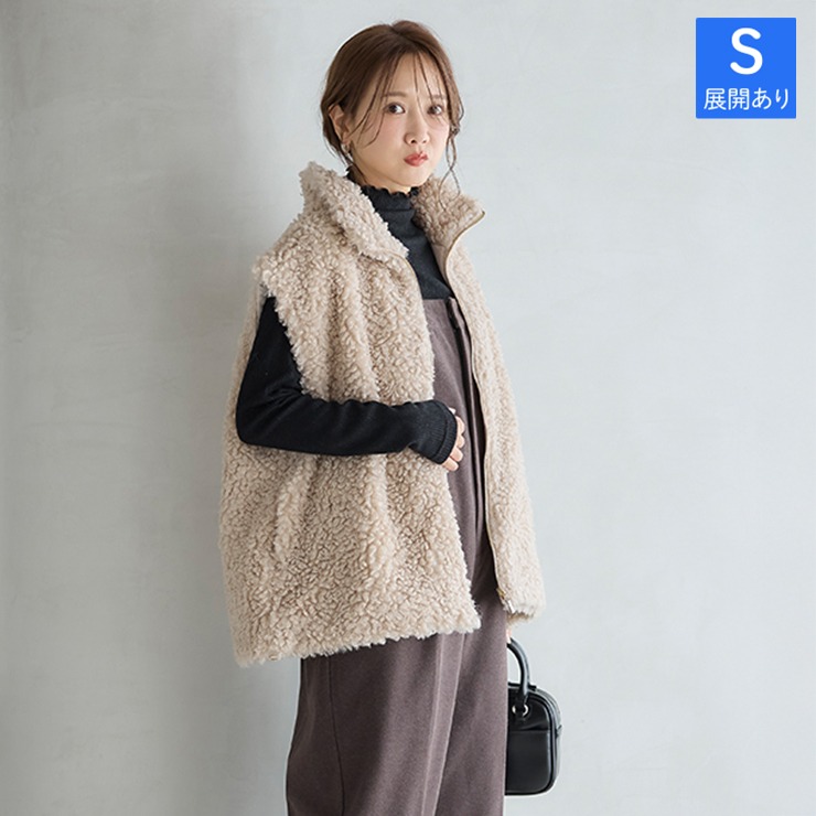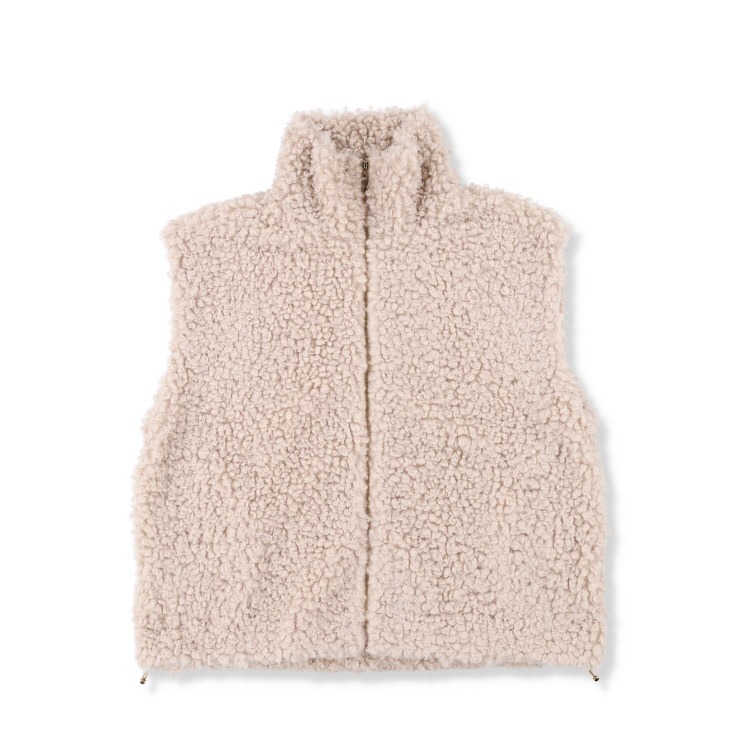 くるくるとした毛足がかわいいボア素材を使用したスリーブレスアウターです。