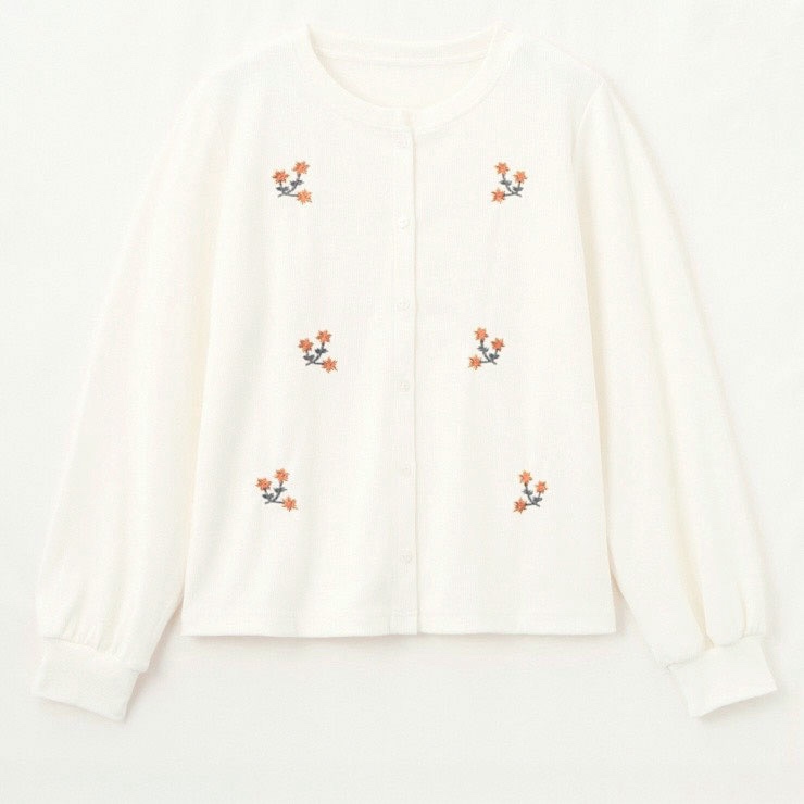 トレンドのフラワー刺繍が華やかなカーディガンです。