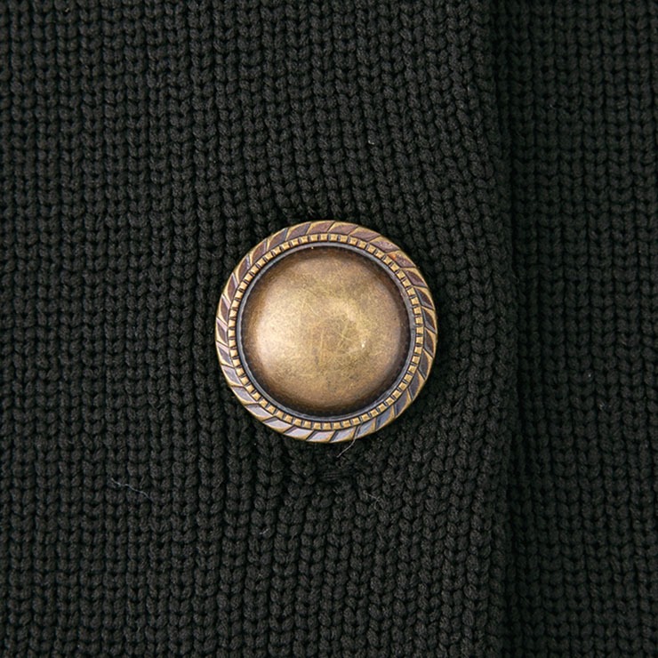 アンティークゴールドボタンと配色パイピングが、上品なアクセントに。
