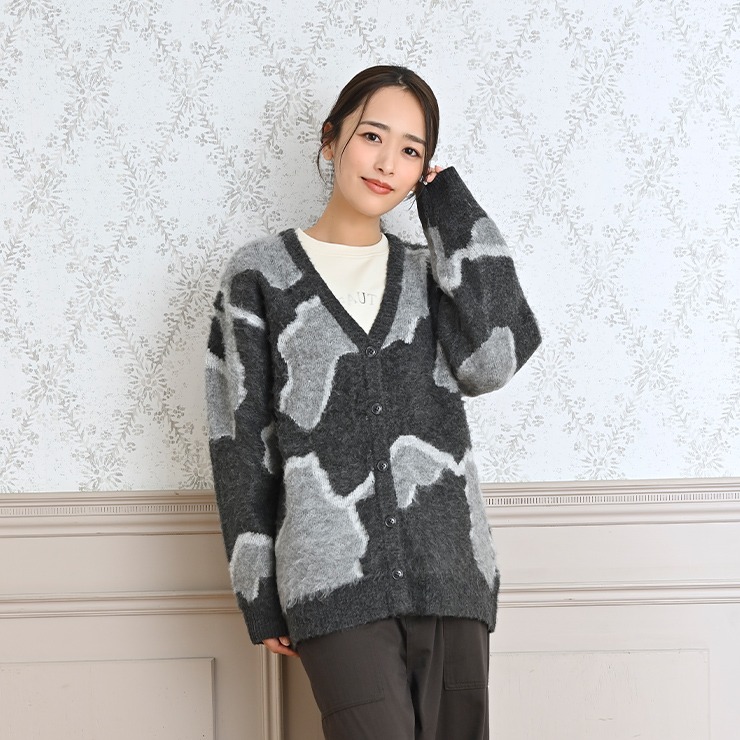 ゆったりとしたサイズ感が可愛いニットカーディガンです。