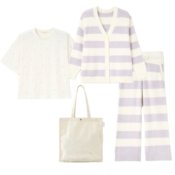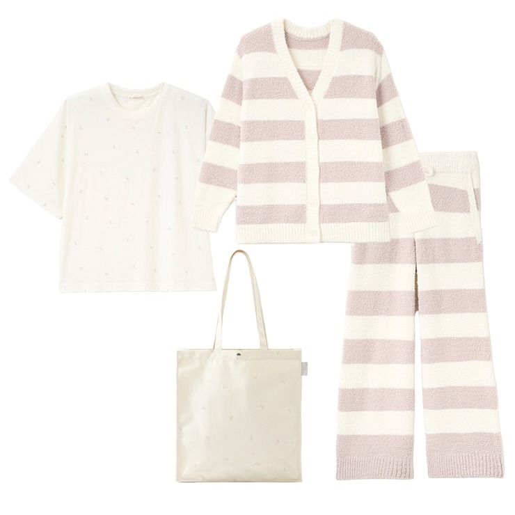 カーディガン、ボトムスはふわふわした素材で、着心地抜群です。