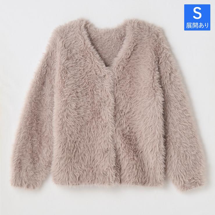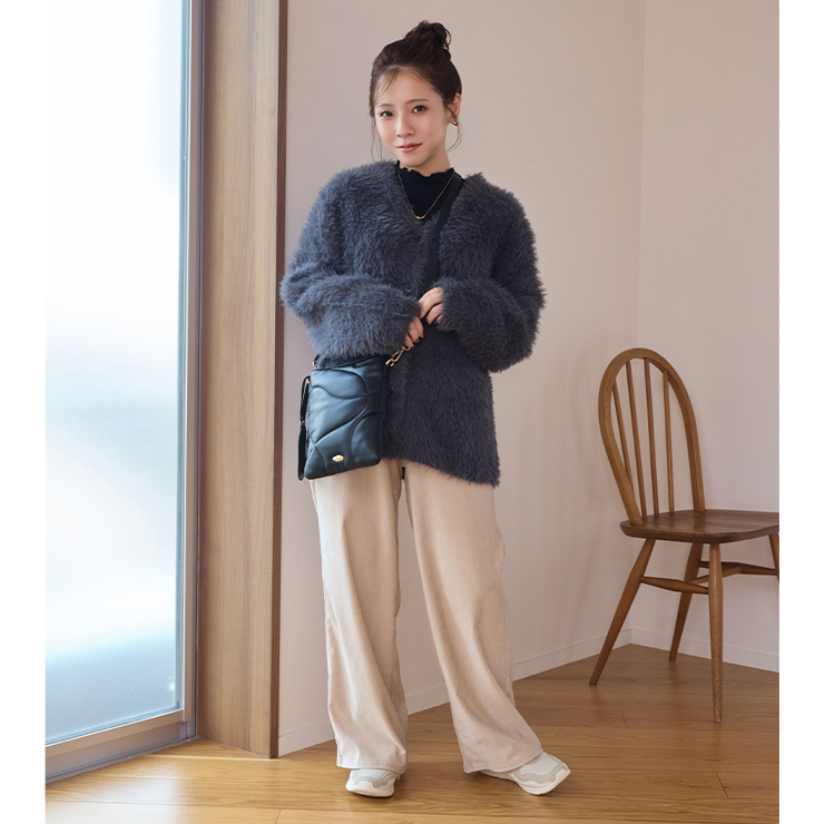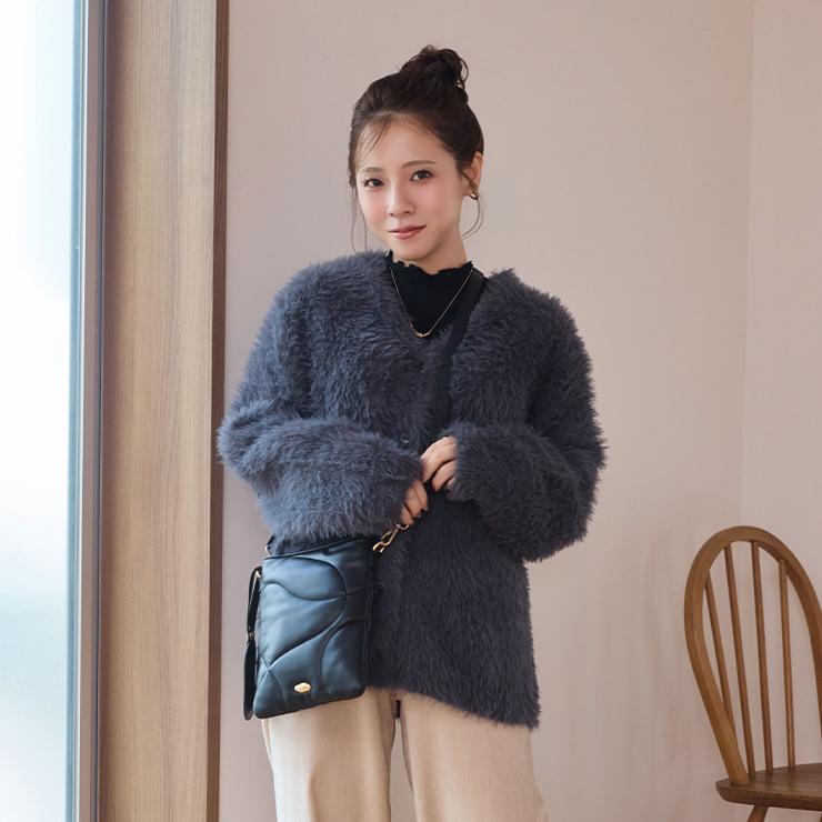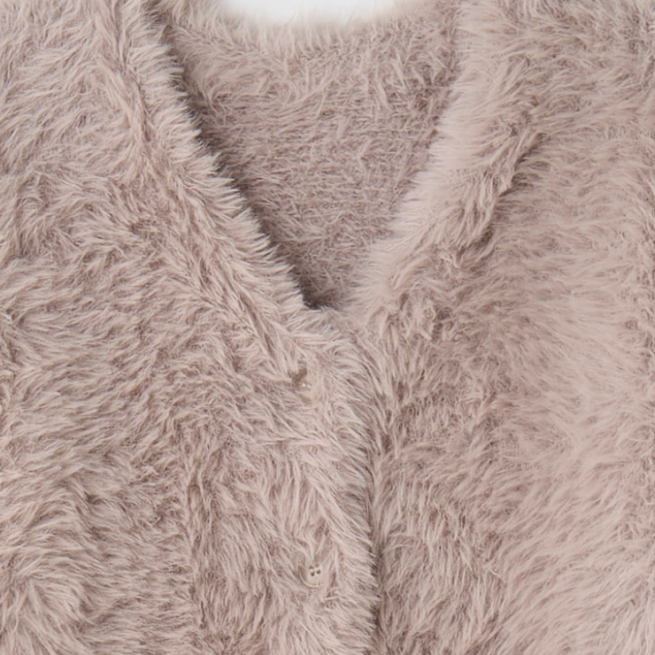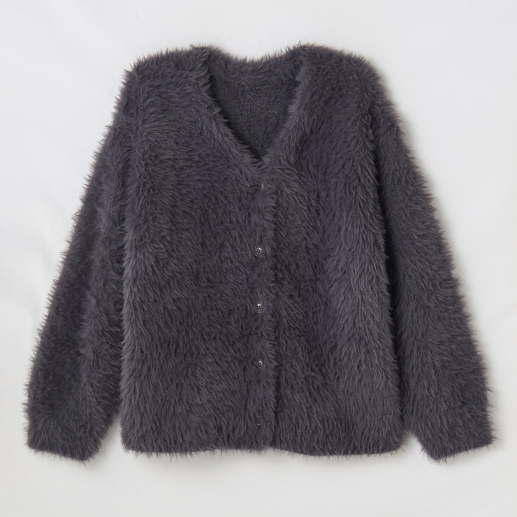 毛足のあるフェザーヤーンを使用したニットカーディガン。
