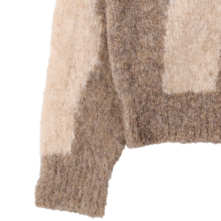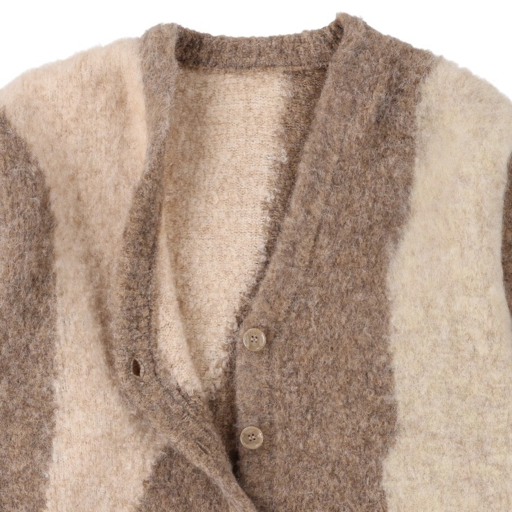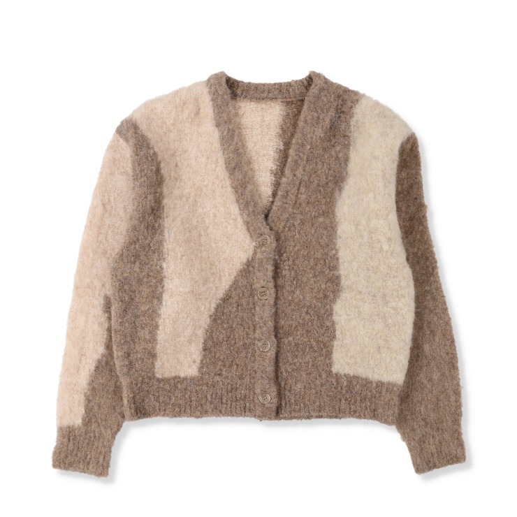 3色配色のブークレニットがおしゃれなニットカーディガンです。