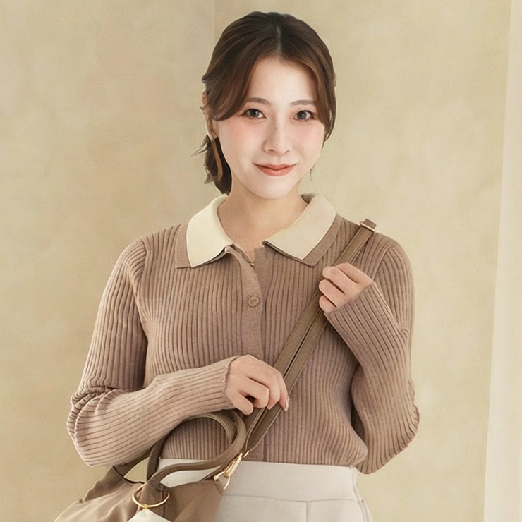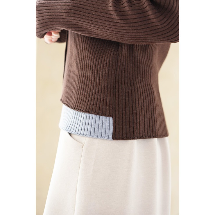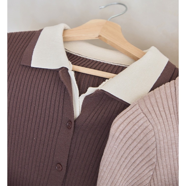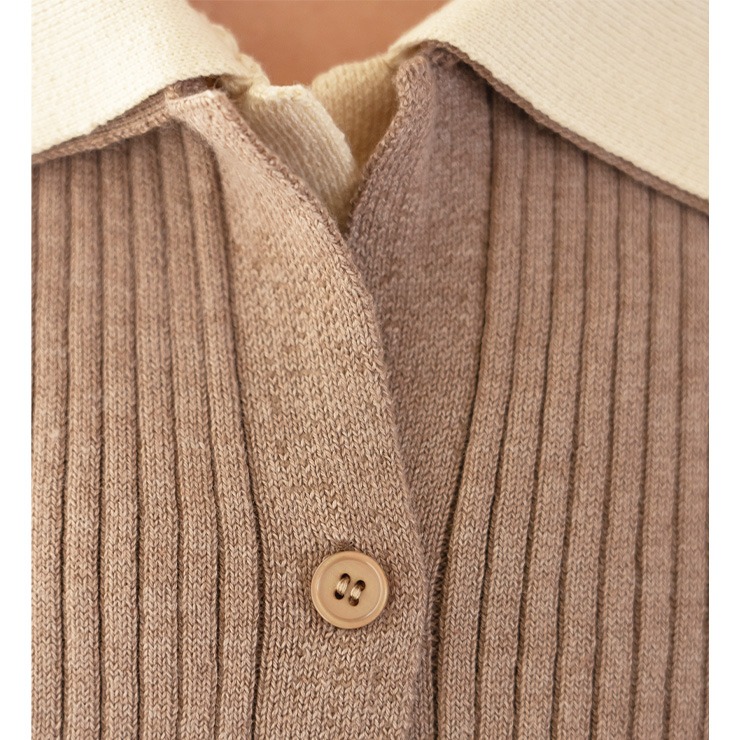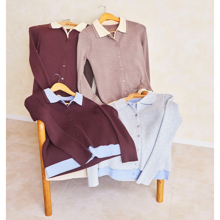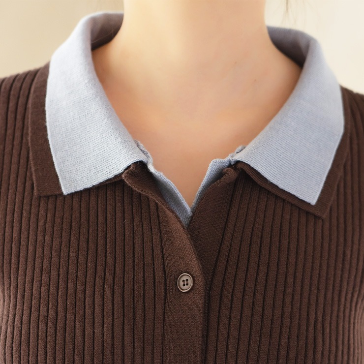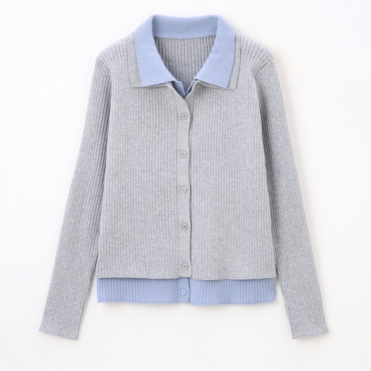 配色が可愛い“ダブル衿”が目を引くリブカーディガン。