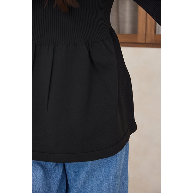 程よくフィット感のあるリブ目とウエストから自然に入るフレアー感が美しいシルエットで、気になるヒップ・腰回りも自然にカバーしてくれて、着るだけでスタイルを良く見せてくれます。