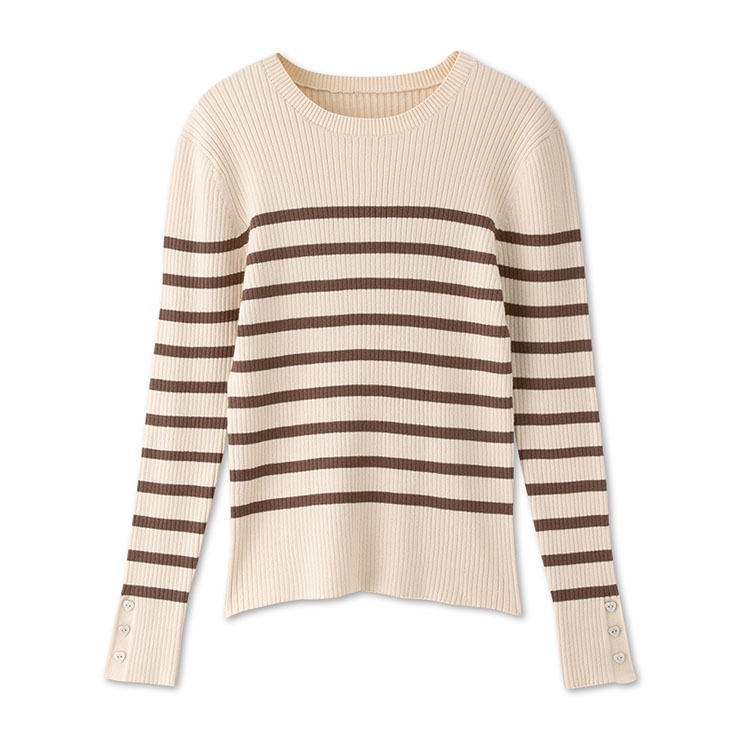 ベーシックながら遊び心も忘れない、淡色好きにぴったりなリブニットです。