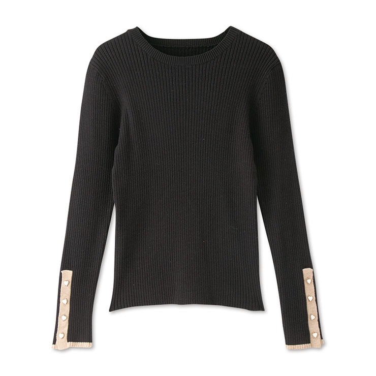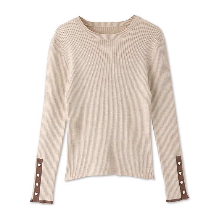 袖口にあしらったハートのゴールドボタンがアクセントになった、女性らしい1枚です。