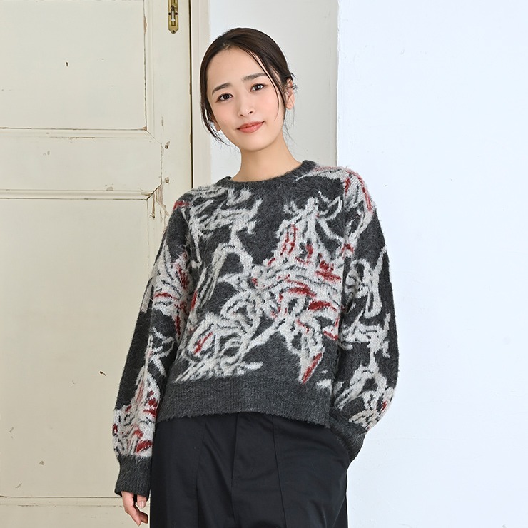 ニュアンスフラワーのジャカードニットプルオーバーです。