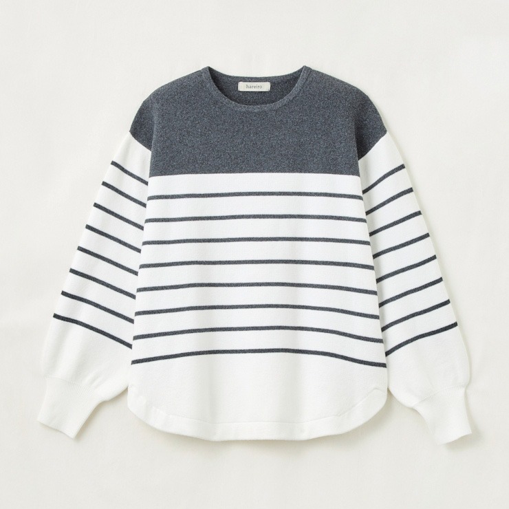 ボーダー柄の裾ラウンドニットプルオーバー!