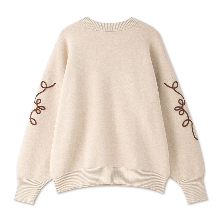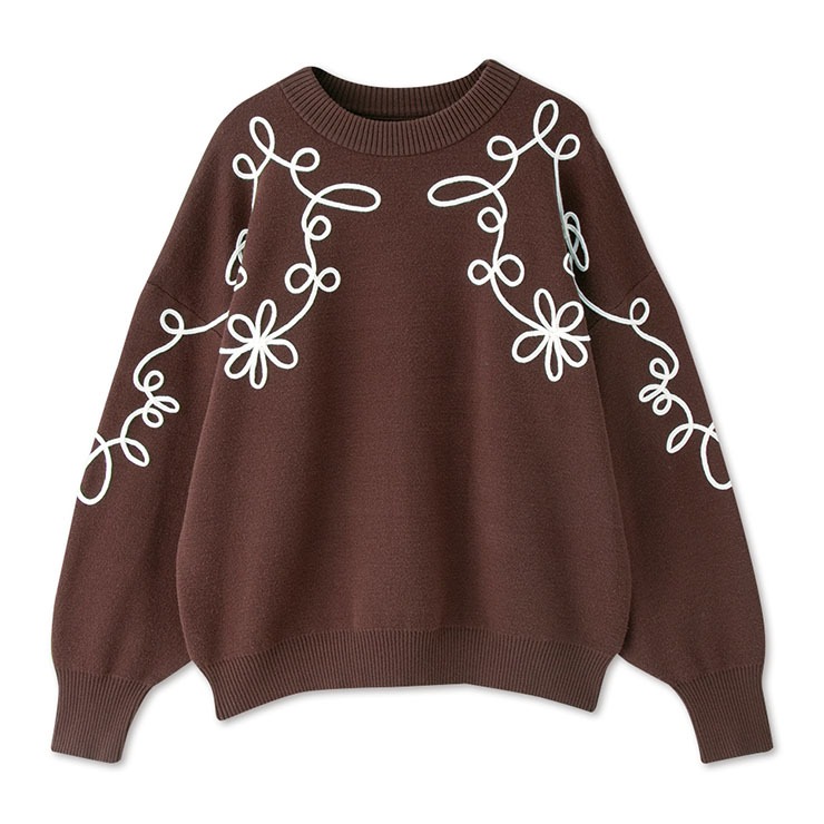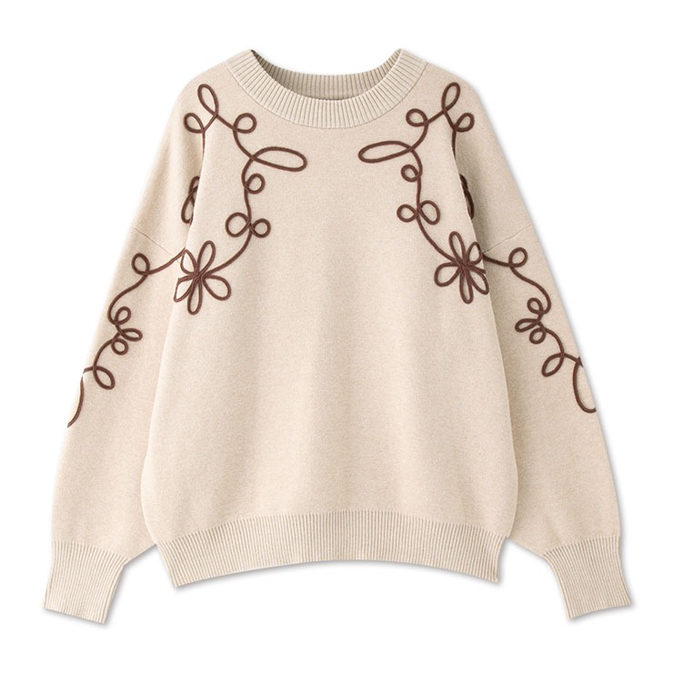 トレンド感あふれるコード刺繍がポイントのニットトップス。