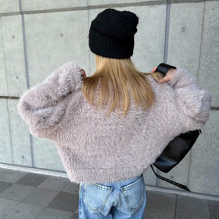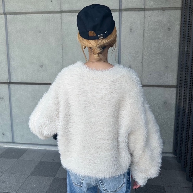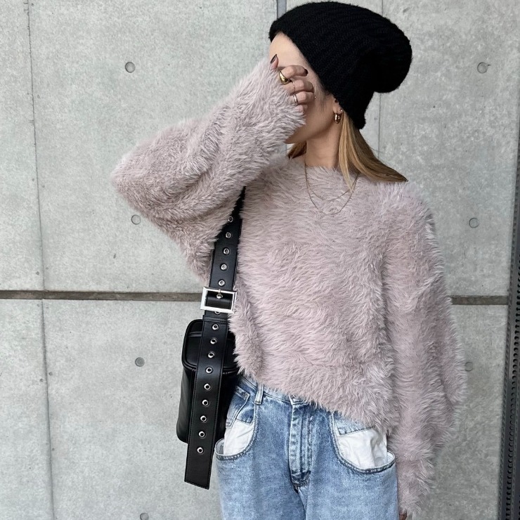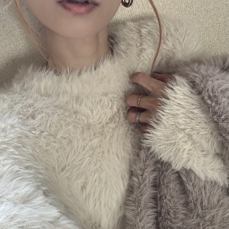 毛足のあるフェザーヤーンを使用したニットプルオーバー