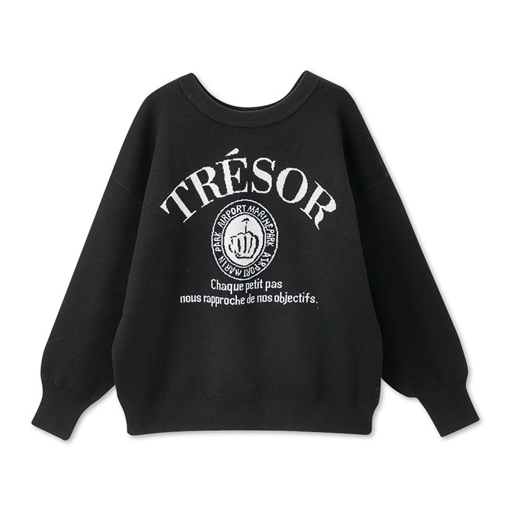 大きなロゴが目を惹くエンブレムロゴジャカードニット。